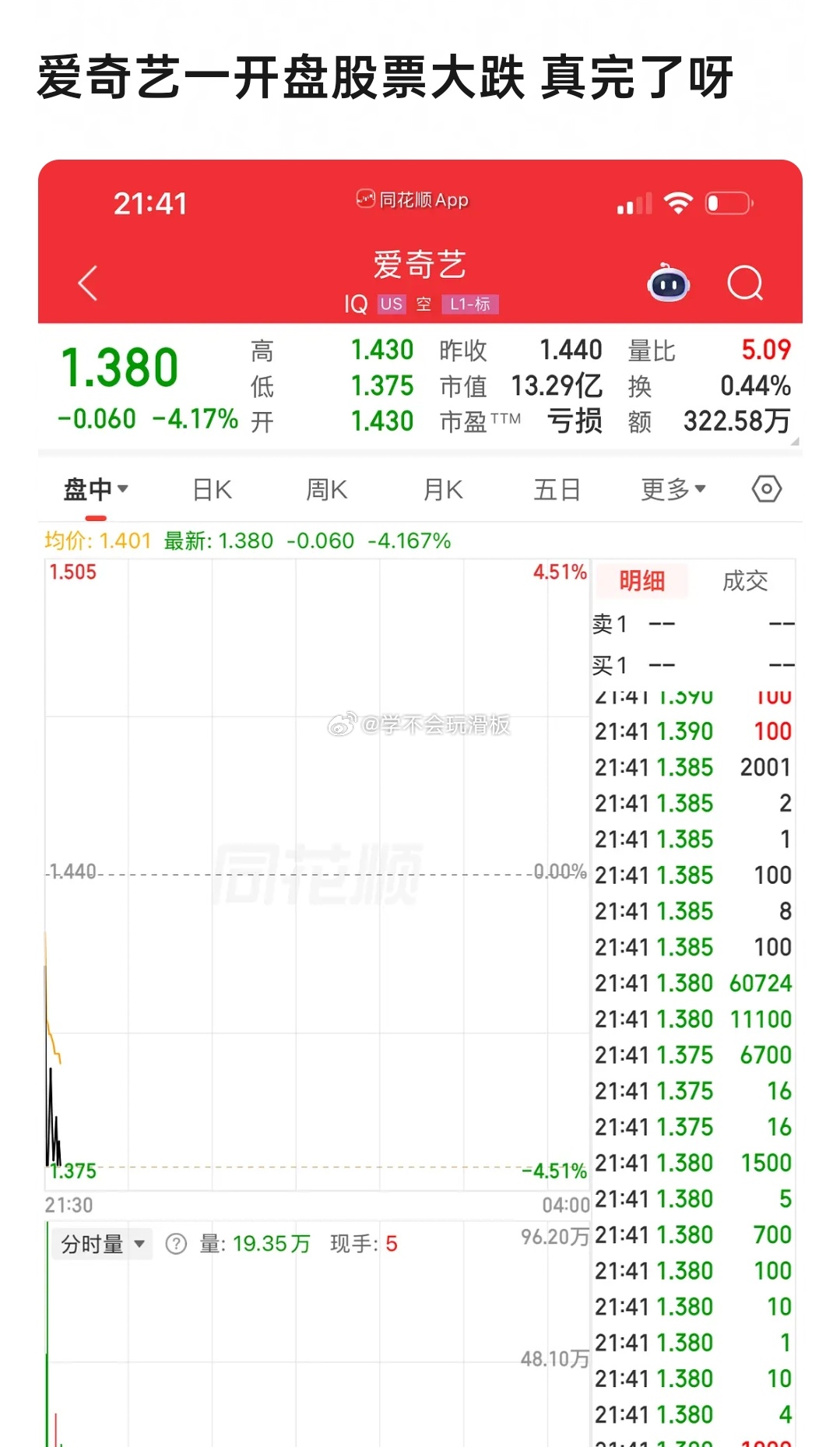 爱奇艺一开盘股票大跌