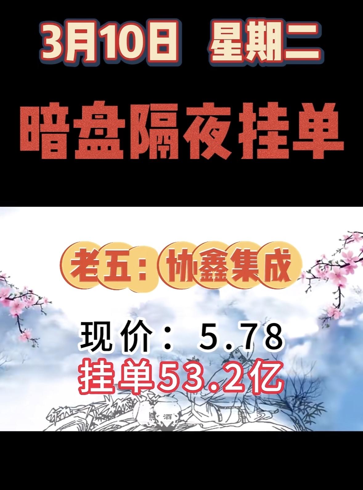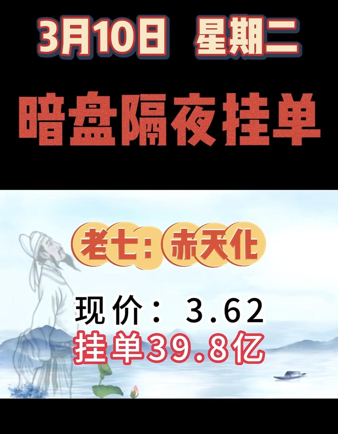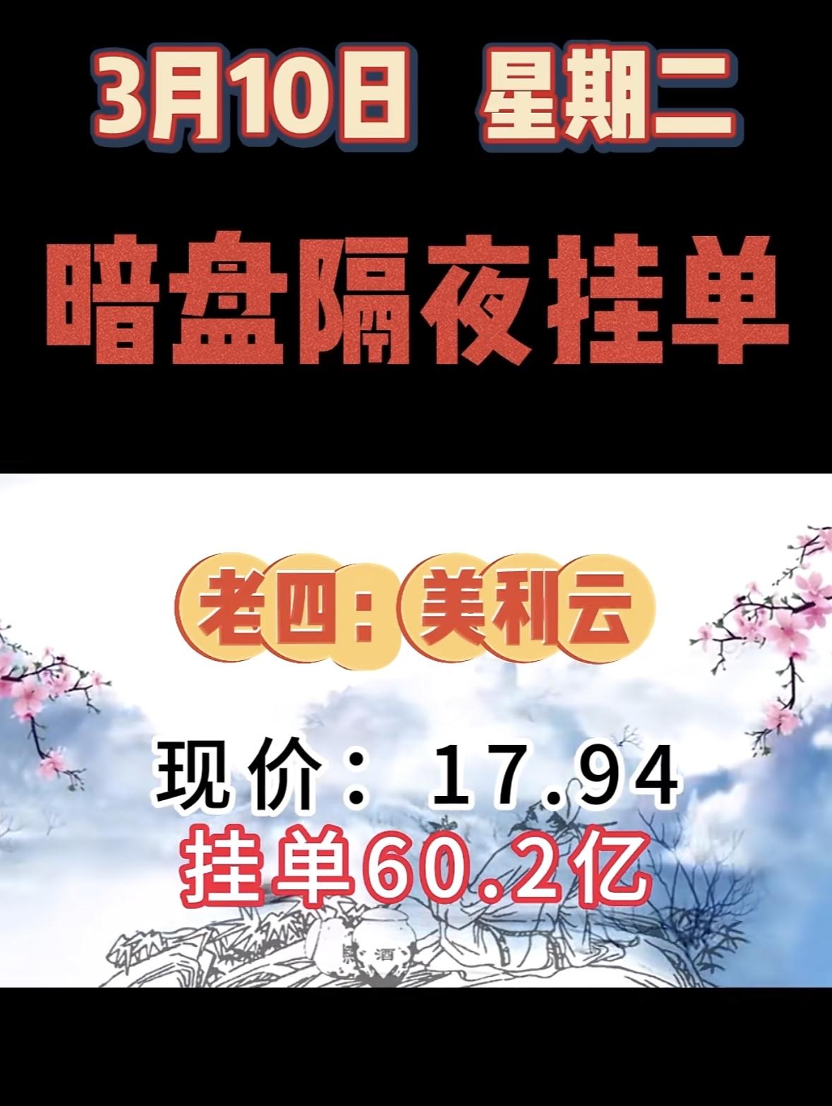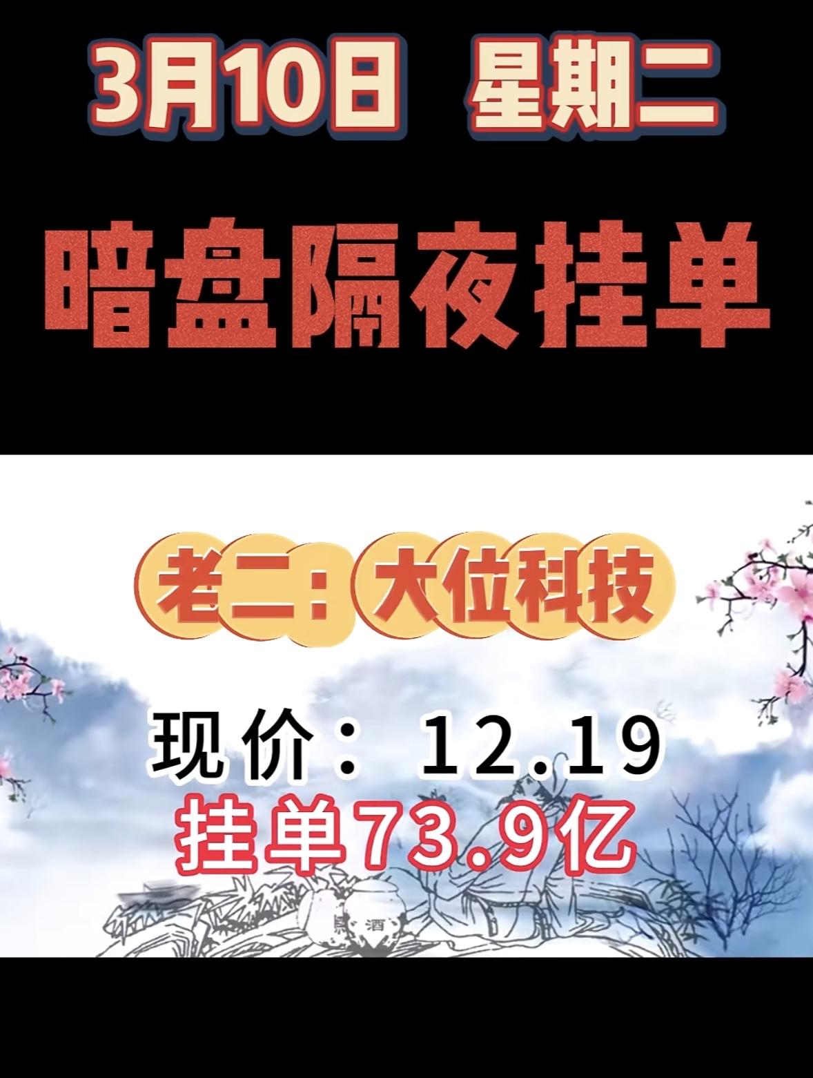 3月10日暗盘隔夜挂单前8名个股揭晓。 这可太让人关注了。第一名拓维信息,现价42.96,买单高达158.64亿;第二名华胜天成,现价30.51,买单59.75亿。美利云、中国长城等也都名列前茅。老幺金开新能,现价9.46,买单50.47亿。 和3月9日对比,拓维信息挂单金额大幅增加,3月9日是43.58亿,这次到了158.64亿。协鑫集成也从3月9日的第二名,到了3月10日的第八名。看来股票市场真是变化莫测,这些数据值得好好研究。