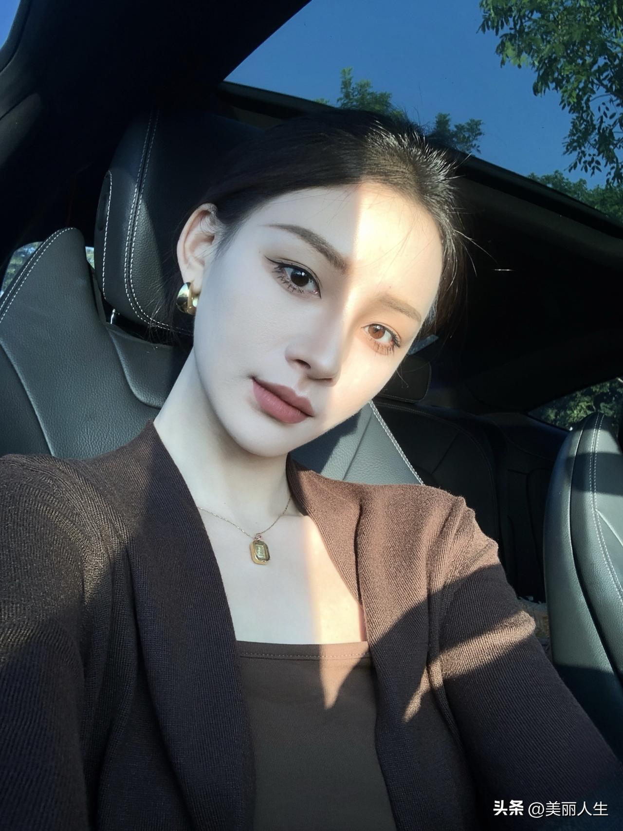 阳光下的温柔侧颜,红唇与长发相映成趣。