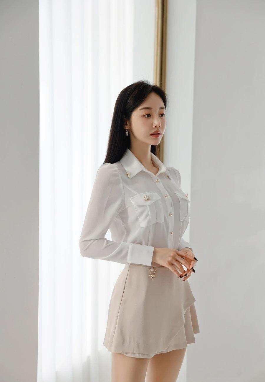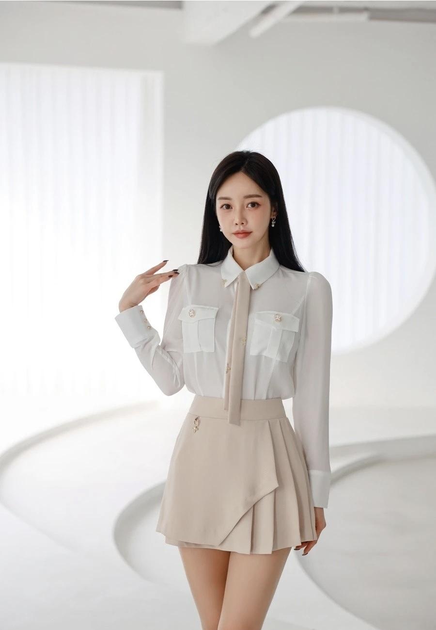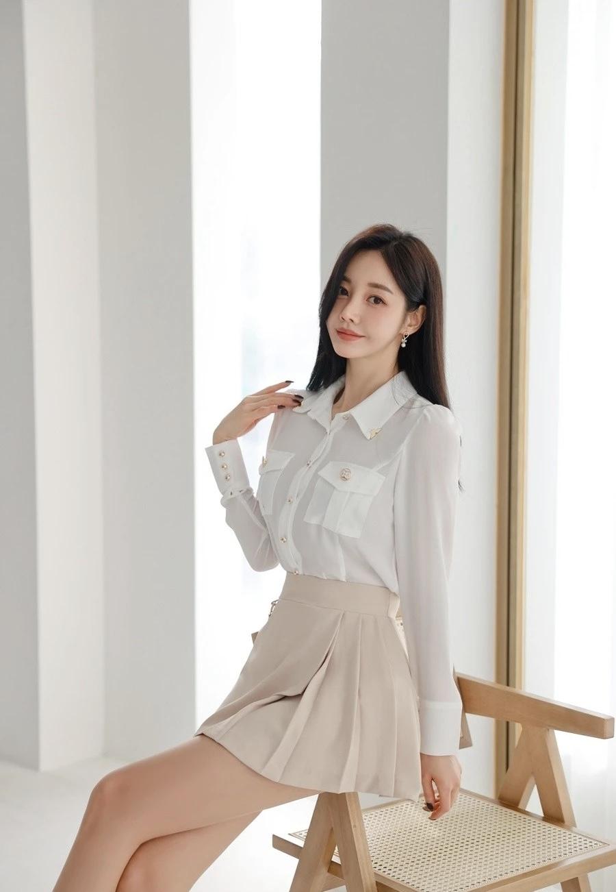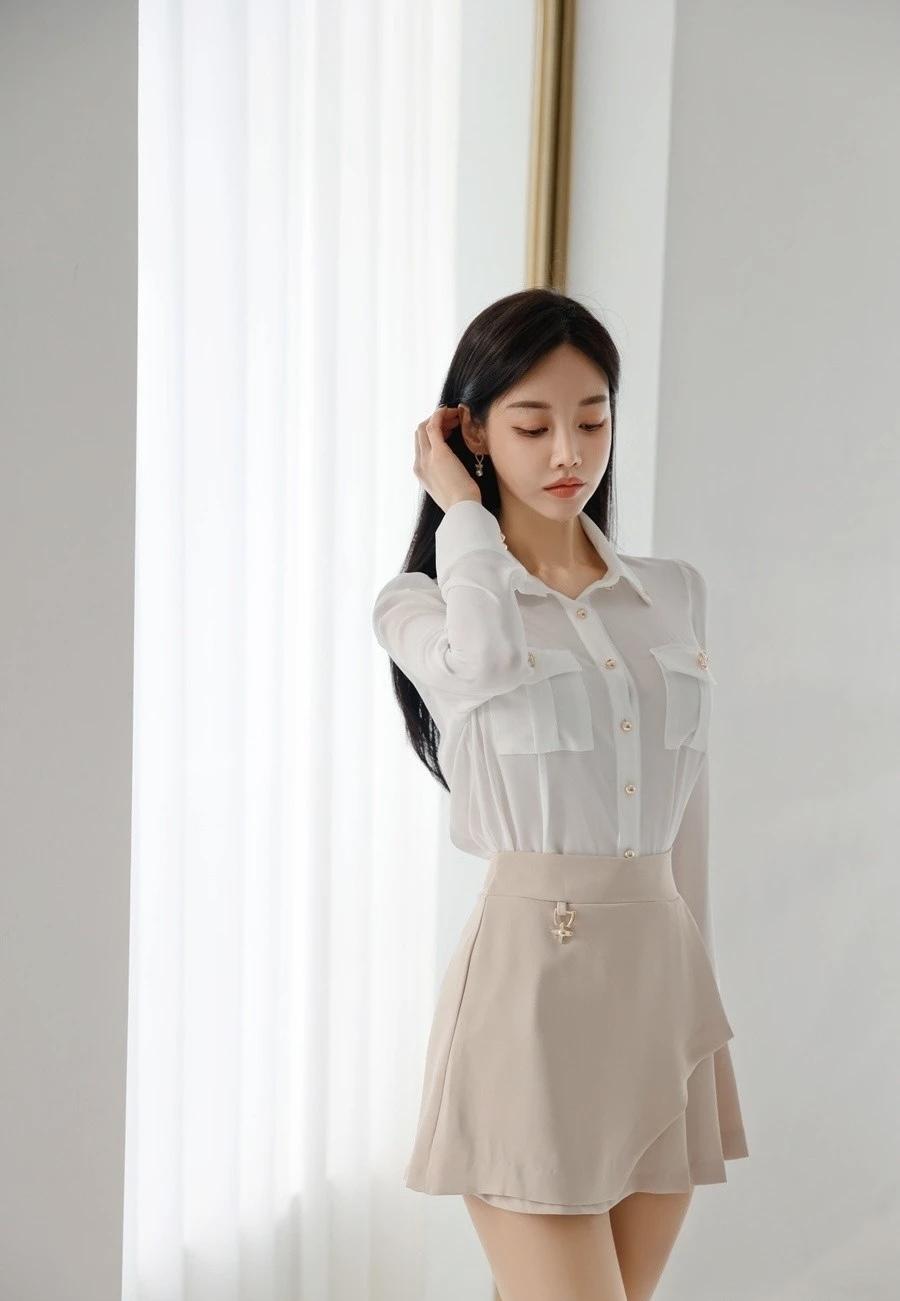 优雅白衬衫+黑色短裙,简约时尚,气质满满!