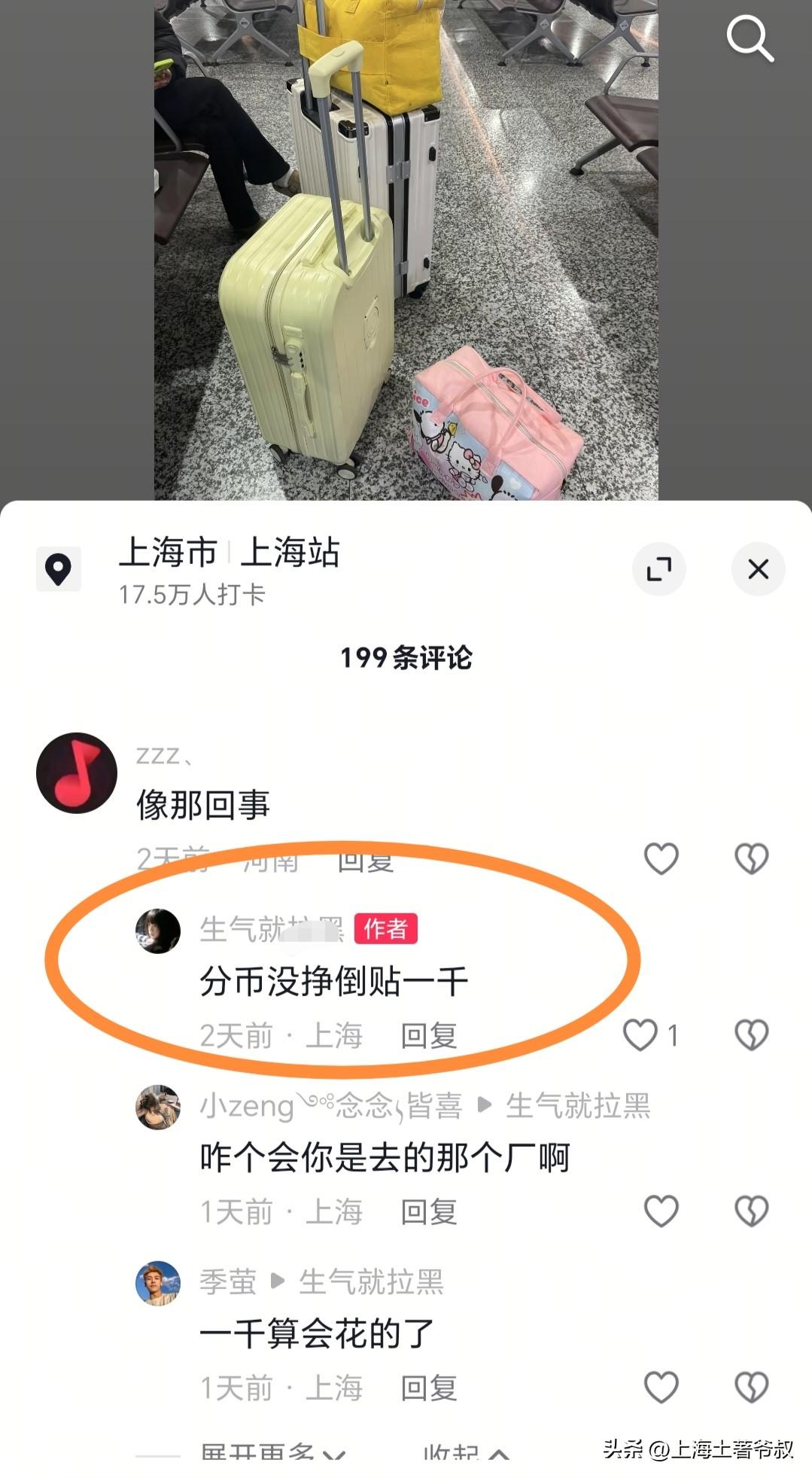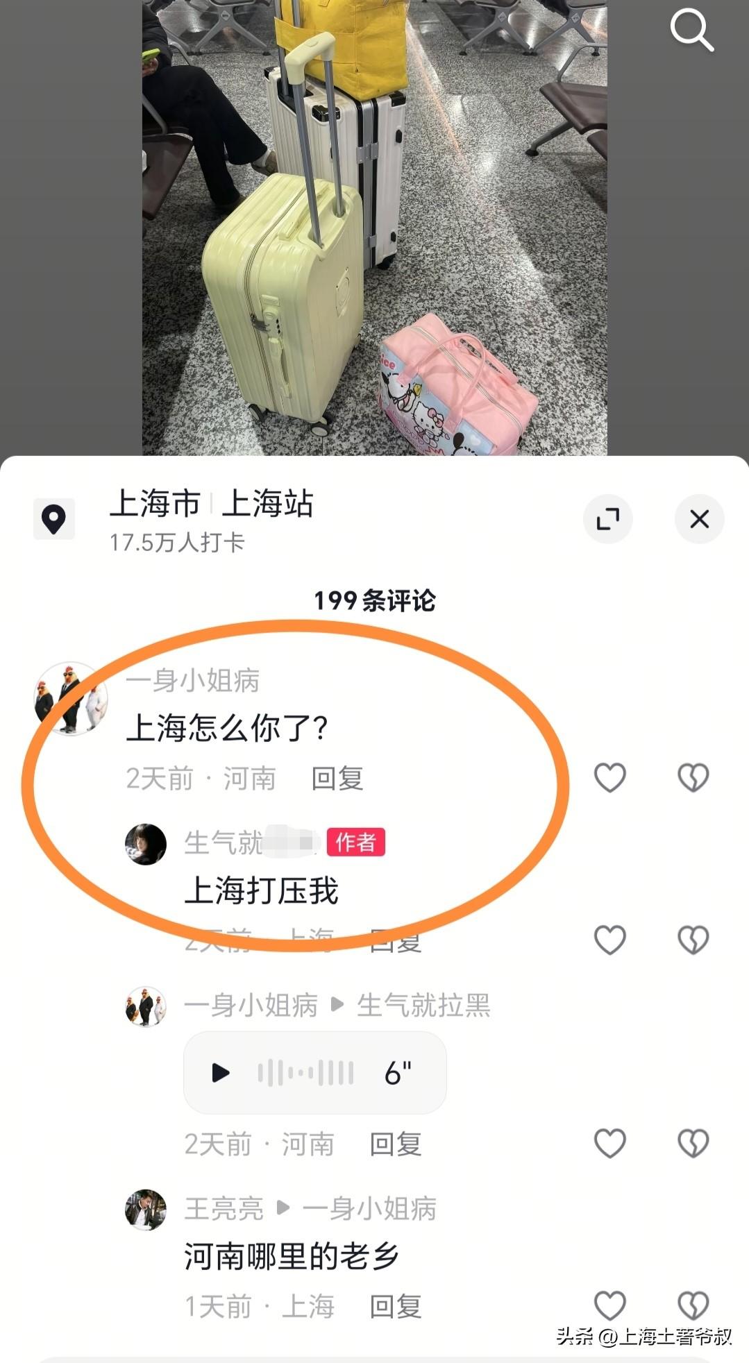 春节过后有个河南女人来到上海找工作,结果不知从什么渠道找到工作干了没几天不干了,钱没拿到气的她凌晨去火车站离沪了,发视频说发誓要坚决离开上海,连根都不会给你们上海。有网友问她为啥这样?她说上海黑她了!来上海一分钱没赚到还倒贴1000大洋。有网友说建议她去浙江广东打工去,那些地方很多工厂是包吃包住的,去那里不需要带钱的。