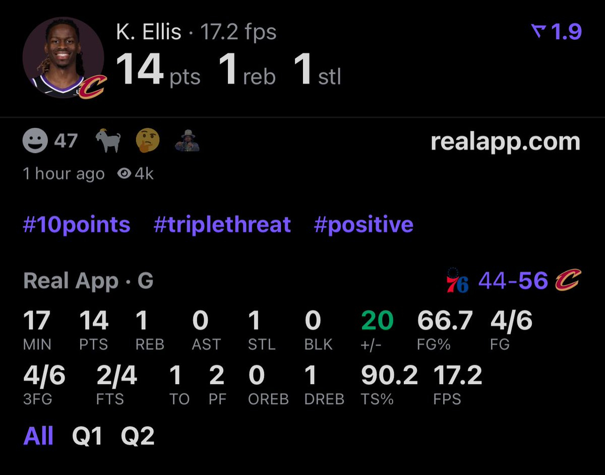 爱酱半场14分6中4的三分正负值+20!!!