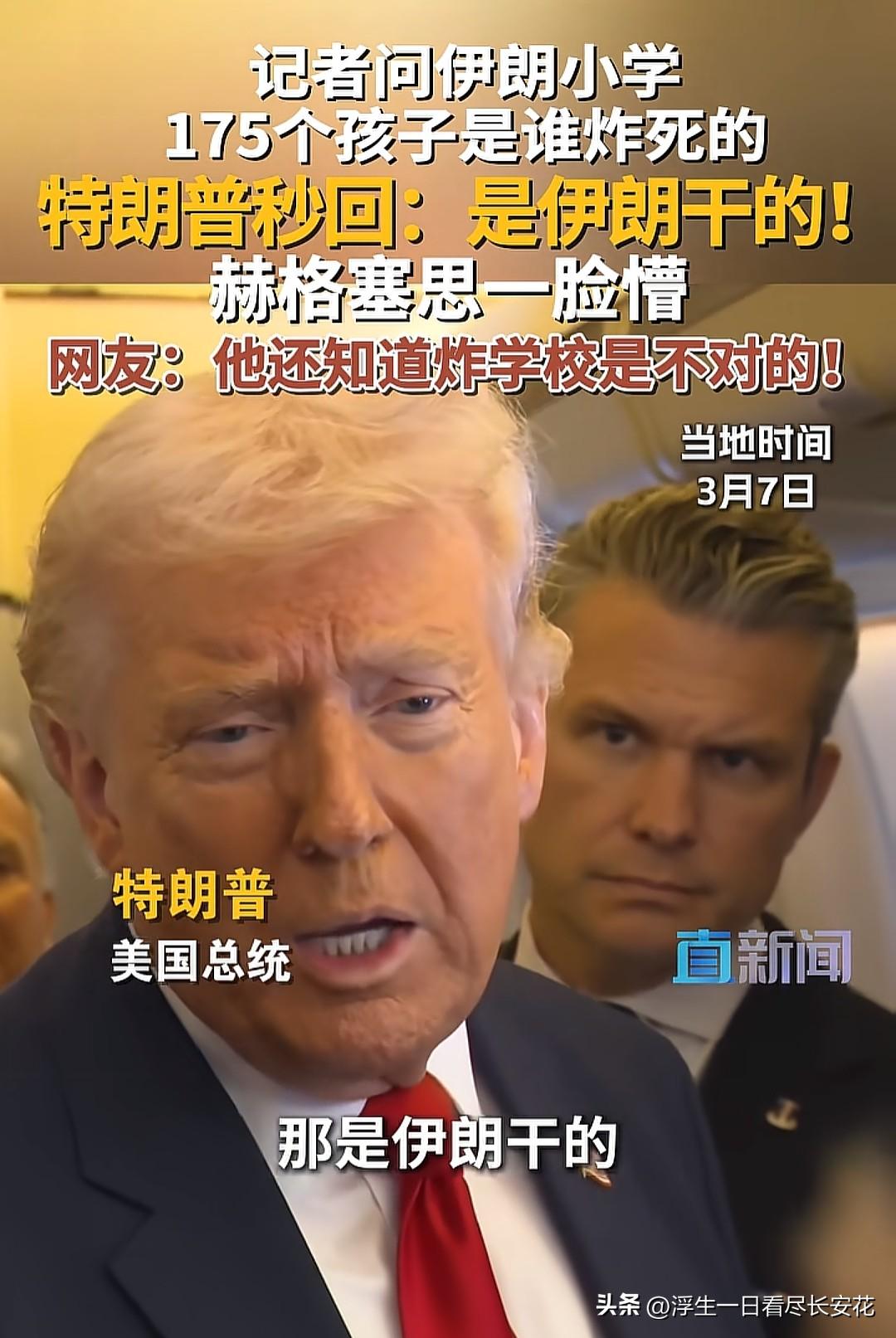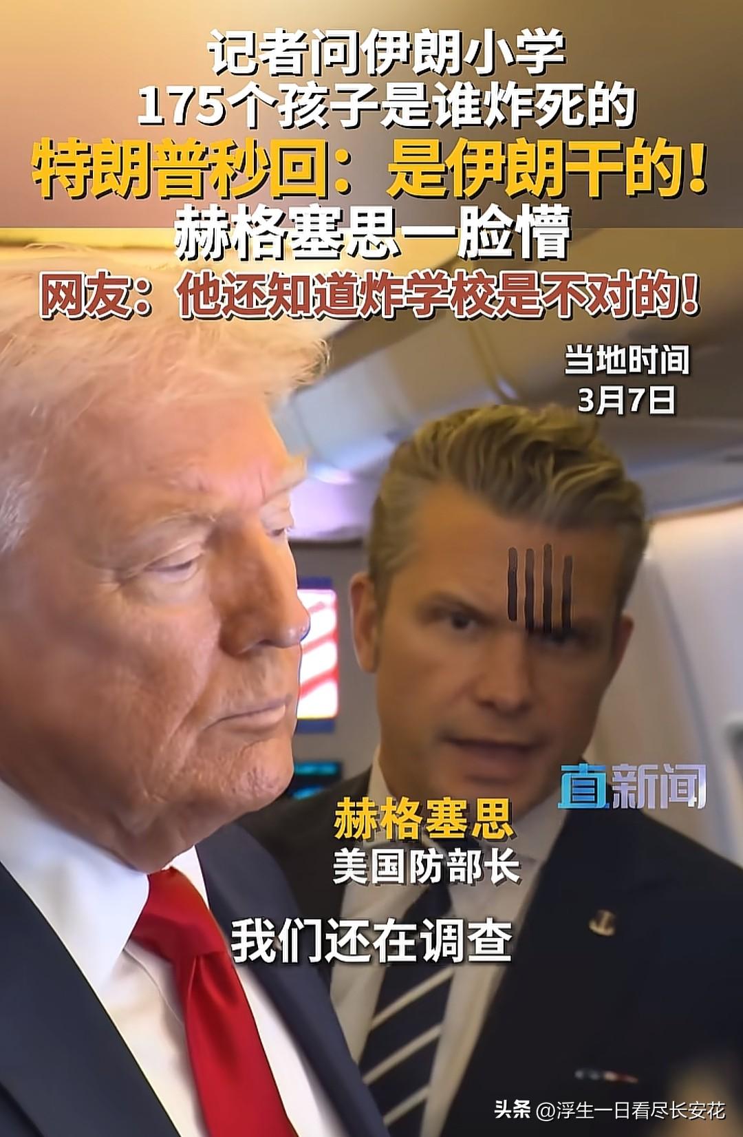 特朗普居然在撒泼和撒娇之间选择了撒谎,简直无敌了,难怪很多人调侃特朗普每天早上起来就是把昨天都作废…… 大家再注意看赫格塞思回答完问题后的微表情,紧紧抿住嘴唇,不自觉的一直点头,回避记者视线,慌张、尴尬、羞愧、心虚,再回答问题时不是肯定的语气,而是用的“我们还在调查”,这样的回答显然心虚,特朗普见状连忙救场,再次把锅甩给了伊朗。 说真的,这种“严肃议题+随意回答”的反差,恰恰戳中了特朗普性格里最核心的矛盾:他的行为逻辑,从不是“解决问题”,而是“维护自己”;从不是“尊重事实”,而是“表演情绪”。 特朗普从不是传统意义上的“政治家”,而是“真人秀明星”——他的每一句话、每一个动作,都在“找镜头”“博关注”。他永远活在自己的“表演世界”里,却忘了,那些被炸弹夺走的孩子,从来不是“台词”,而是真实的生命。