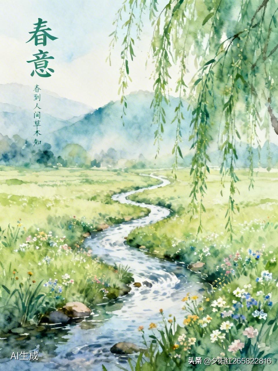 《春意》 春到人间草木知, 便觉眼前春播催。 农人整田又耕地, 撒下种子稻谷豆。 等闲识得东风面, 万紫千红总是春。 草长莺飞二月天, 拂堤杨柳醉春烟。 春日踏青觅芳踪, 信步效野意万重。 清风拂面步履轻, 桃李争艳春意浓。