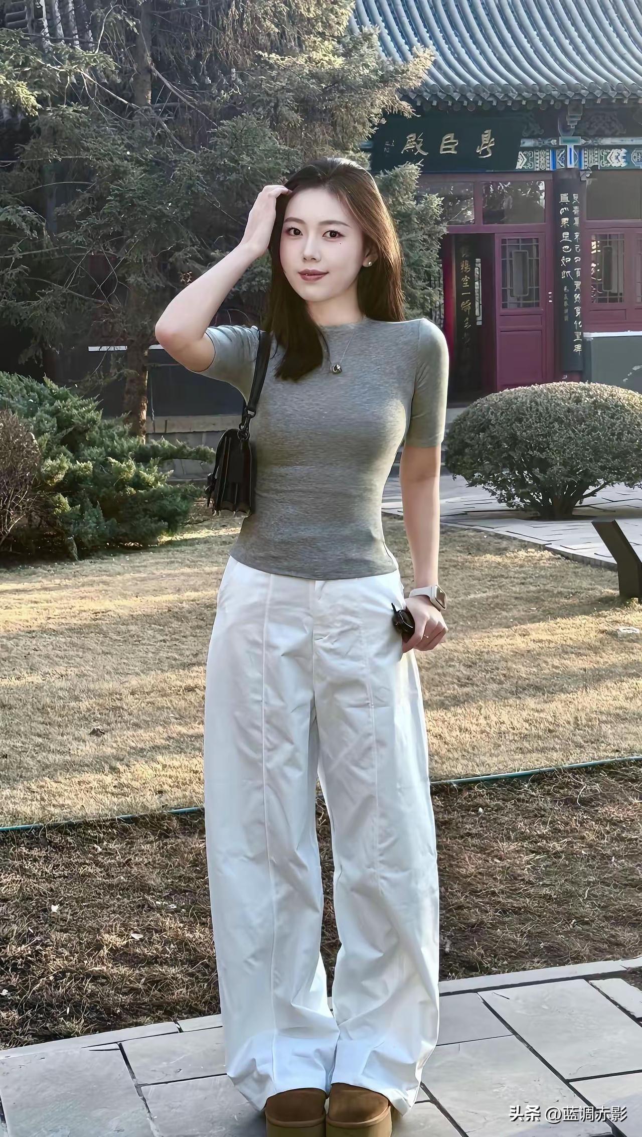 灰色上衣+白色阔腿裤,简约优雅,尽显都市时尚感!