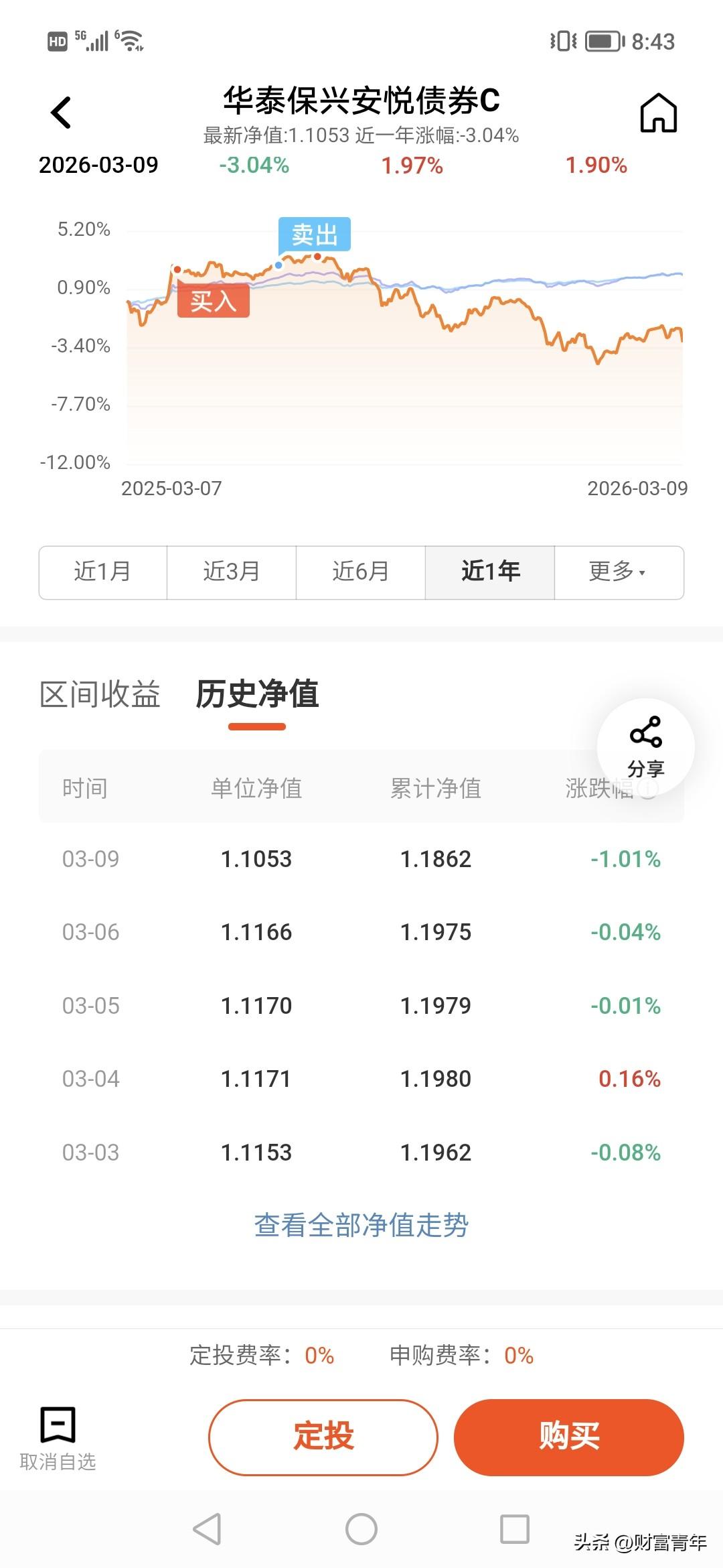 很多人伤心了吧?昨天华仔一天竟然跳水1.01%!!看谁还认为债市是铁的收益。 至今亏了6%,说明什么?! 华仔这个曾经那么牛,在债市烂的时候不堪一击,说明经理也就这样。 在市场下,人,根本起不到作用,很多人也是伤心了。这就说明一个道理,你能信谁。?!债市 !