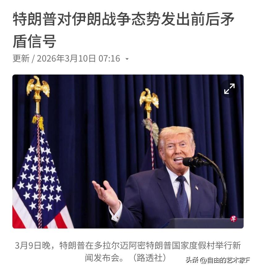 特朗普遭遇耻辱一幕!美媒针尖对麦芒:逼的他真慌了 北京当地时间3月10日凌晨,特朗普首次就伊朗冲突召开了记者会就相关情况说明。 接受美国媒体采访的时候他透露,对伊朗发动的侵略战接近完成,时间比原订的计划要短很多。伊朗现在没有海军,没有通信,没有空军,导弹无人机也所剩无几。 从军事角度上边来讲,伊朗已经彻底的没有任何价值了,被美国和以色列联合摧毁了,对他看来战争基本上已经接近结束。在他说完了这些之后,美股应声上涨股价油价回落。 面对着特朗普的大赢特赢,美国记者却不打算放了他 记者提问特朗普:您说这场战争"已经打的非常彻底"。但您的国防部长却说"这仅仅是个开始"。那么到底你和他的哪个说法是正确的? 特朗普短暂的一愣:你可以说两者都对 随后记者又追问:伊朗方面公布了小学,被美军使用战斧导弹打击的画面,证实此次袭击就是美军所谓。 但是您刚才暗示,伊朗不知怎么弄到了一枚战斧导弹,并在战争第一天用它轰炸了自己的小学。为什么只有你这么说?” 特朗普听到这个问题面色温怒:辩解道战斧导弹被许多国家使用……这非常普遍。没有什么可争辩的。之后就迅速结束了这场记者会。 但是在市场收盘后,特朗普在佛罗里达州的一场共和党议员集会上又开始了一波骚操作,称伊朗是心头大患,虽然美国解决了很多的问题,但是还不够,对于这场冲突,美国必须坚定的进行下去,彻底地打败伊朗,让任何想帮助伊朗的人都没有办法恢复那片土地。 对于该事件,我们是怎么看的?短短几个小时?特朗普表态前后矛盾的目的,是用政治喊话稳定市场预期,用战果安抚民众,给油价和股市“降温”,事实他也做到了这些在他暗示停战的意思之后油价应声下跌 和民主党人的谈话才是特朗普真正的目的,不会轻易对伊朗停战,不把伊朗逼上绝路,他是不会收手的,所以中东局势仍存在着不小的变数。这一点伊朗也需要特别的关注。