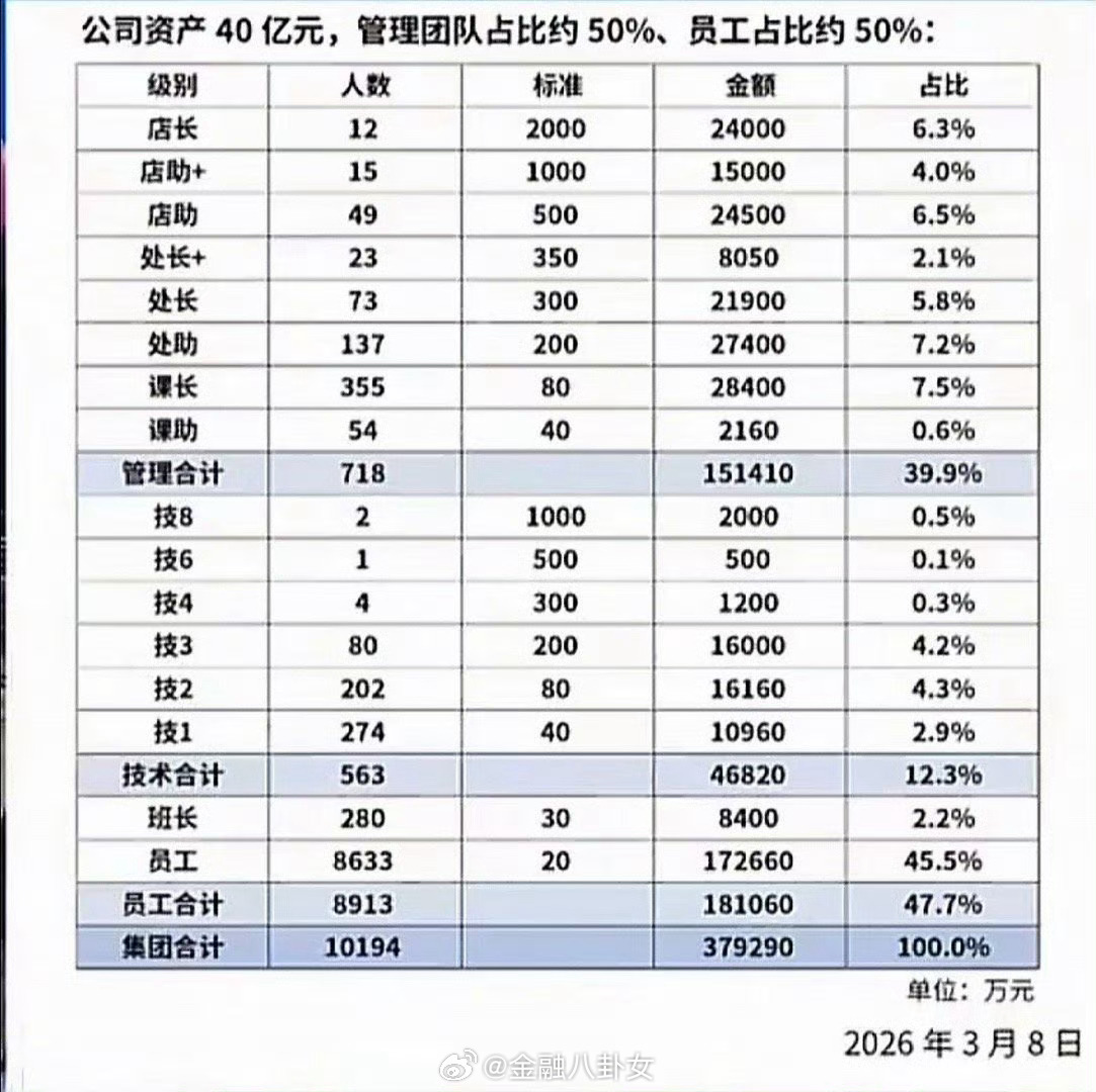 胖东来12名店长共分2.4亿资产利润2025年胖东来8000多名员工税后平均月收入9000元左右;净利润估计15亿元左右,平均员工每人分配10万元左右,管理层加技术人员平均每人分配70万元左右