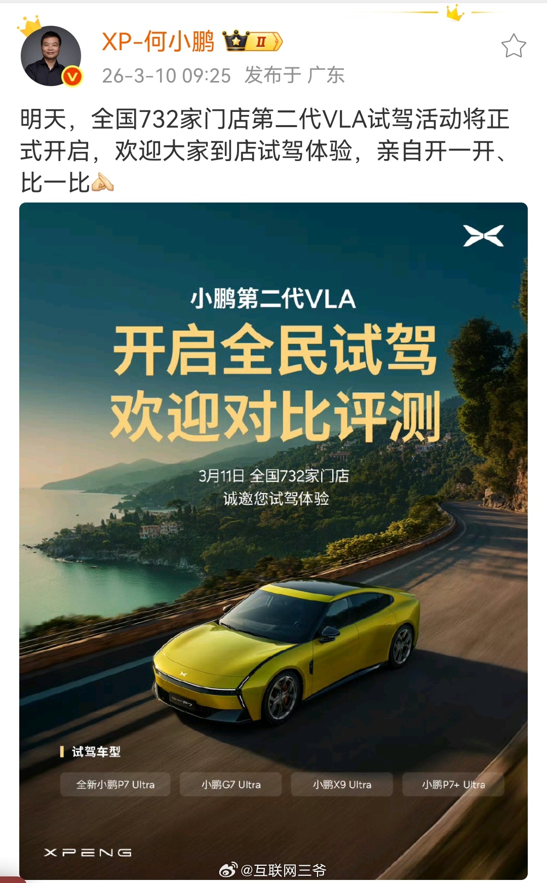 第二代VLA发布会之后,选择了小鹏汽车,市场还是很认可的,这段时间也陆续开放了试驾,有兴趣的朋友也可以去试驾评测下