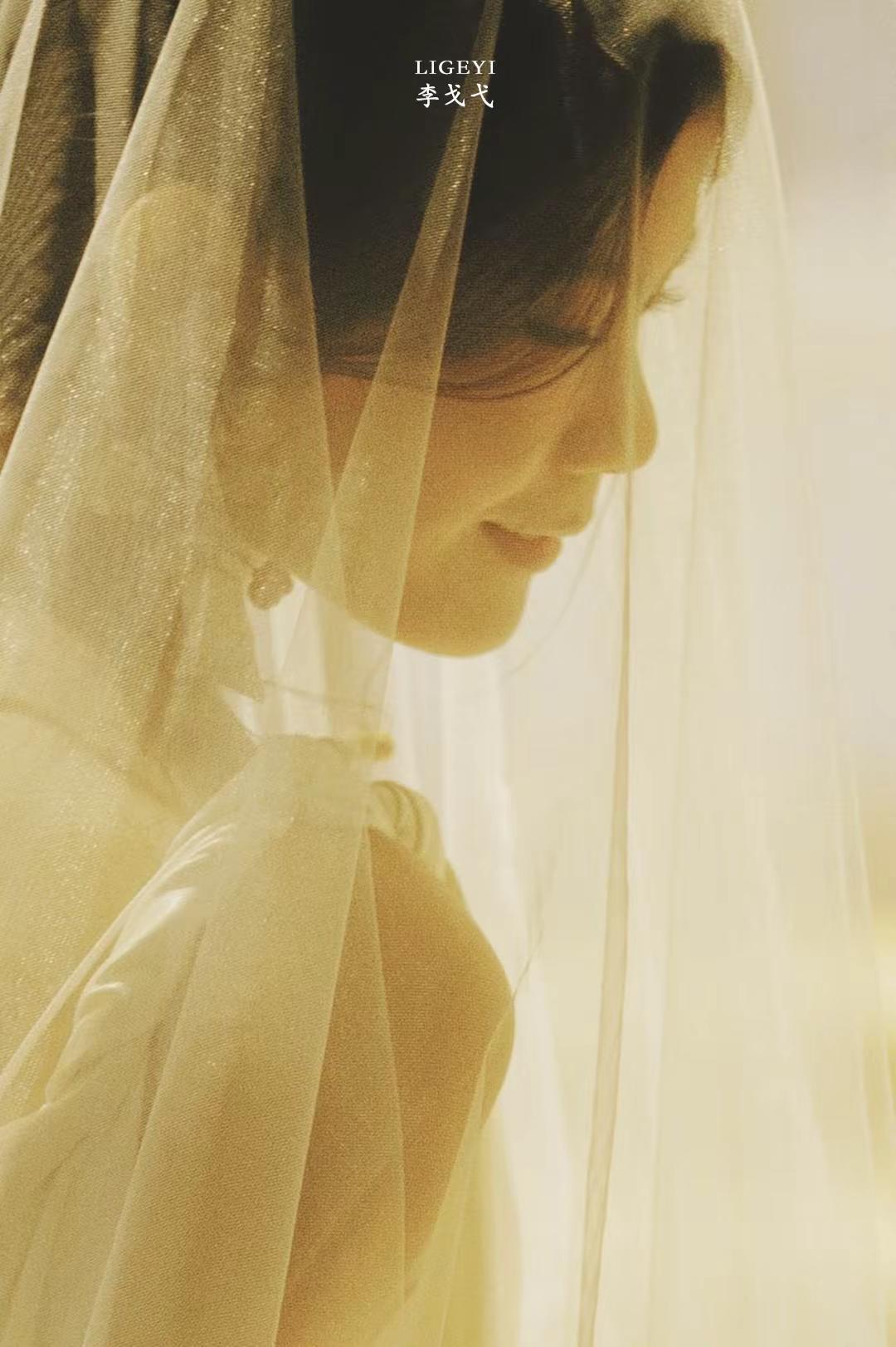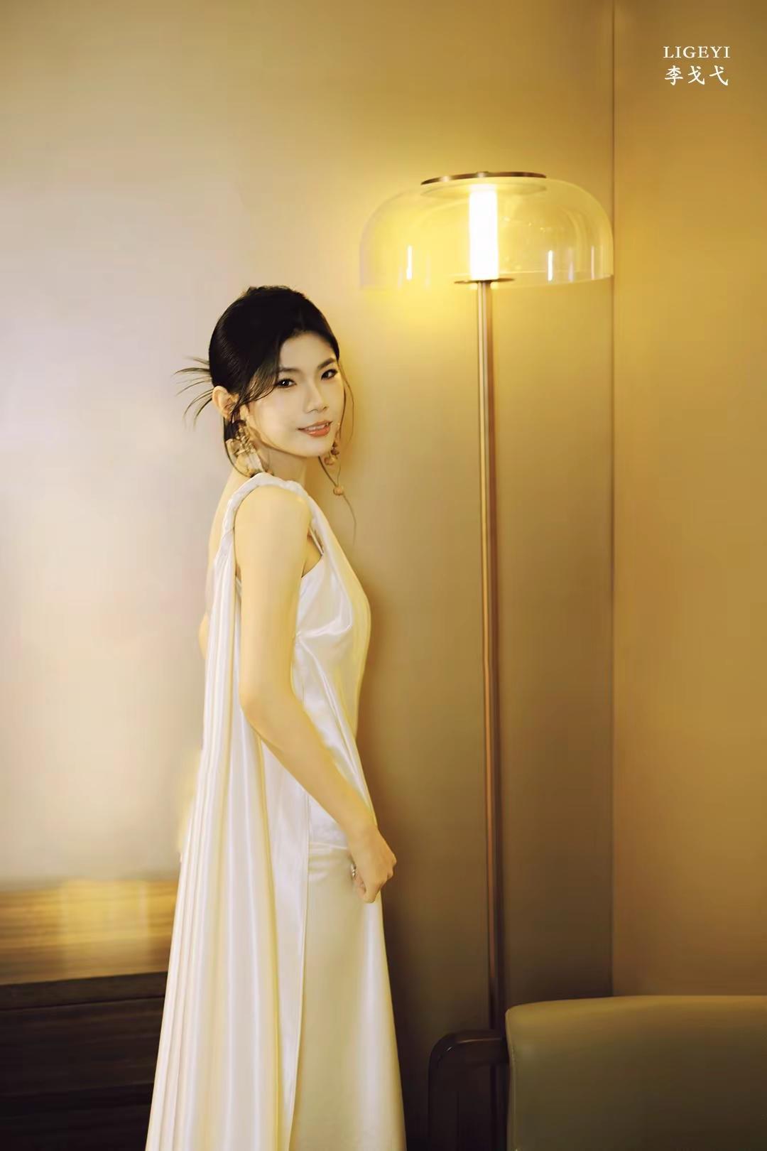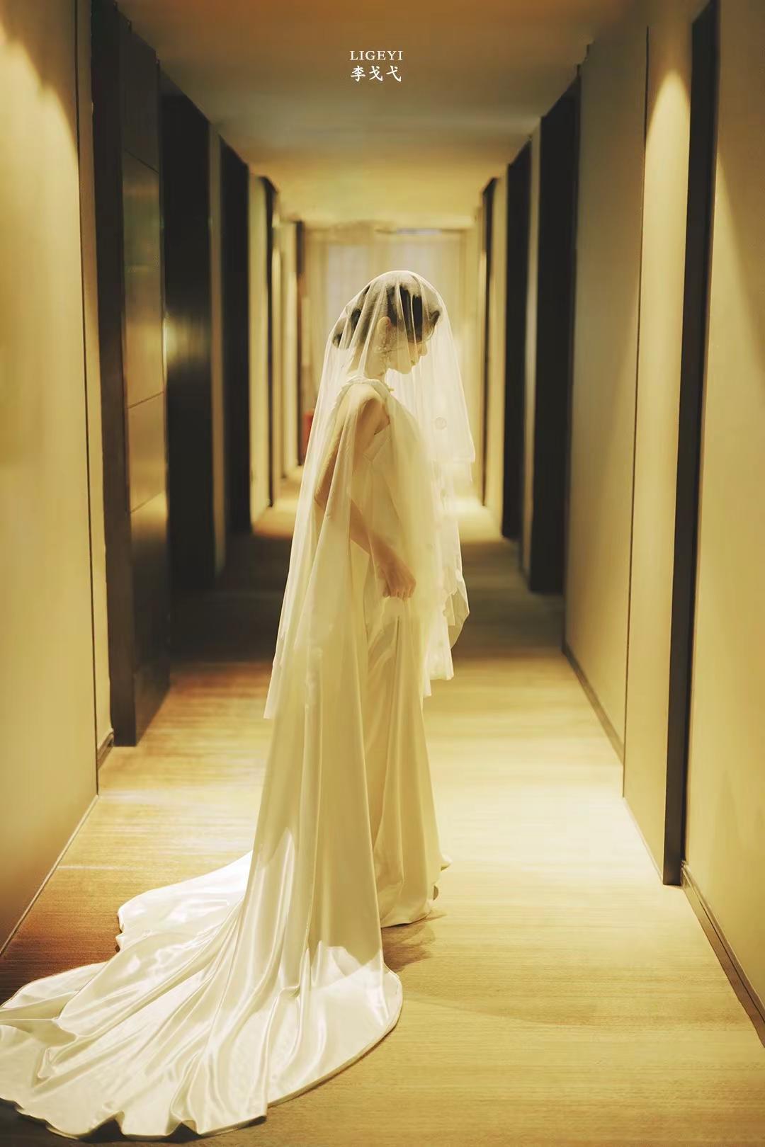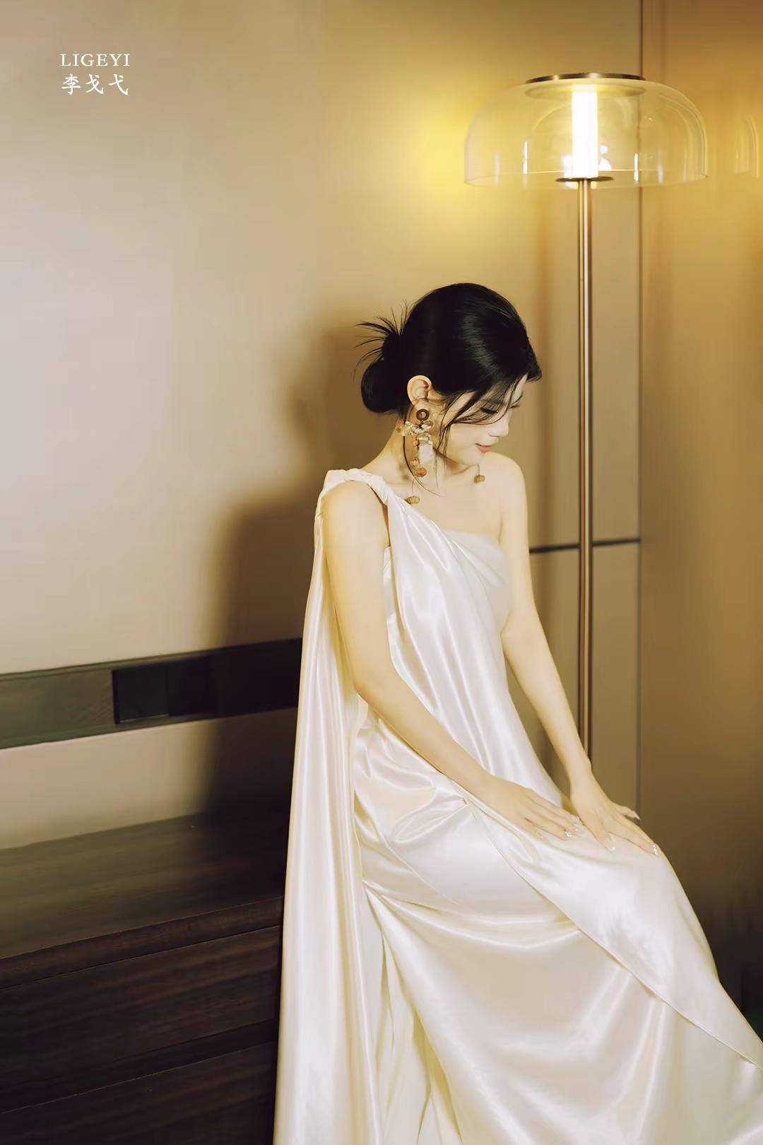 安静幸福式晨袍。白色缎面礼服 婚纱情绪