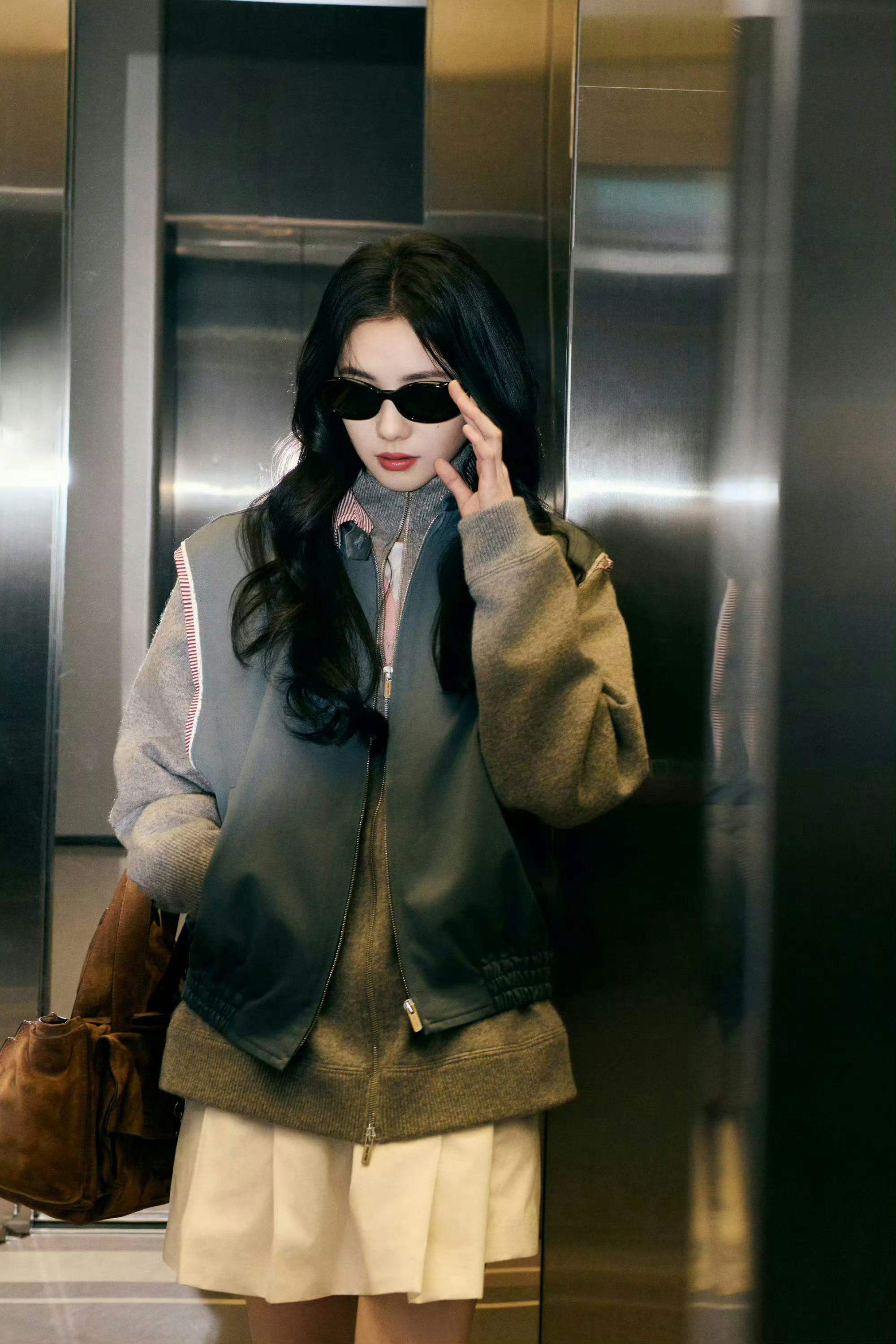 刘亦菲这条裤子挺养生,毕竟降温了肚脐眼必须护住啊