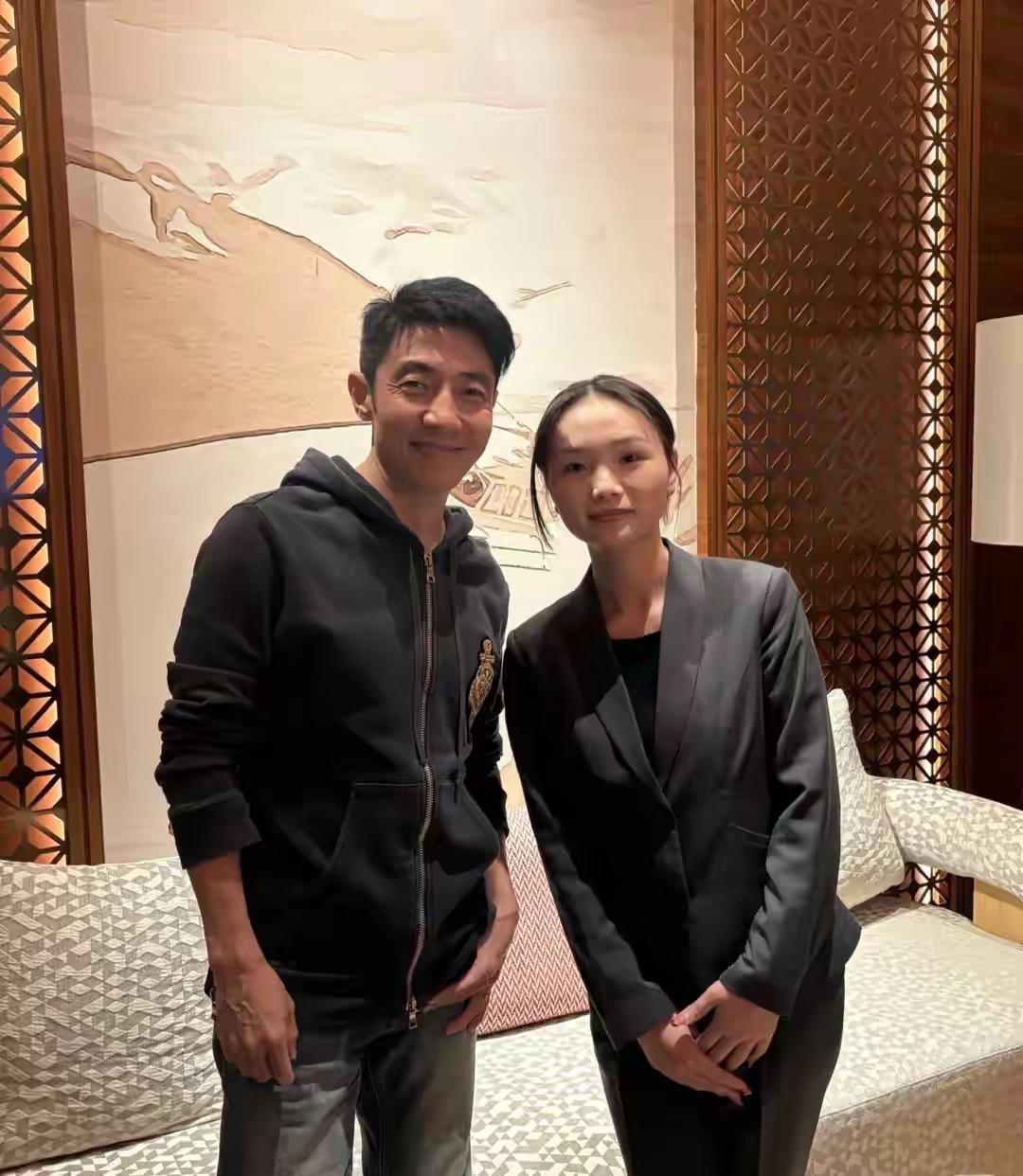46岁秦岚在宁波一家餐馆吃饭,和老板一起拍摄合影。她看起来好年轻,身材太好了!