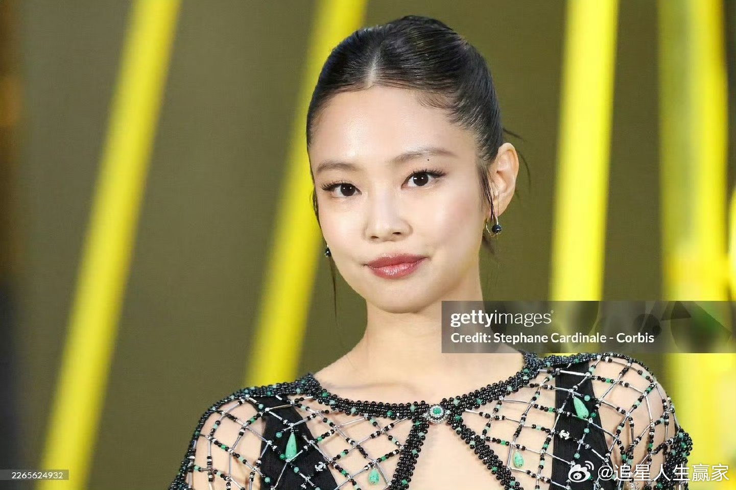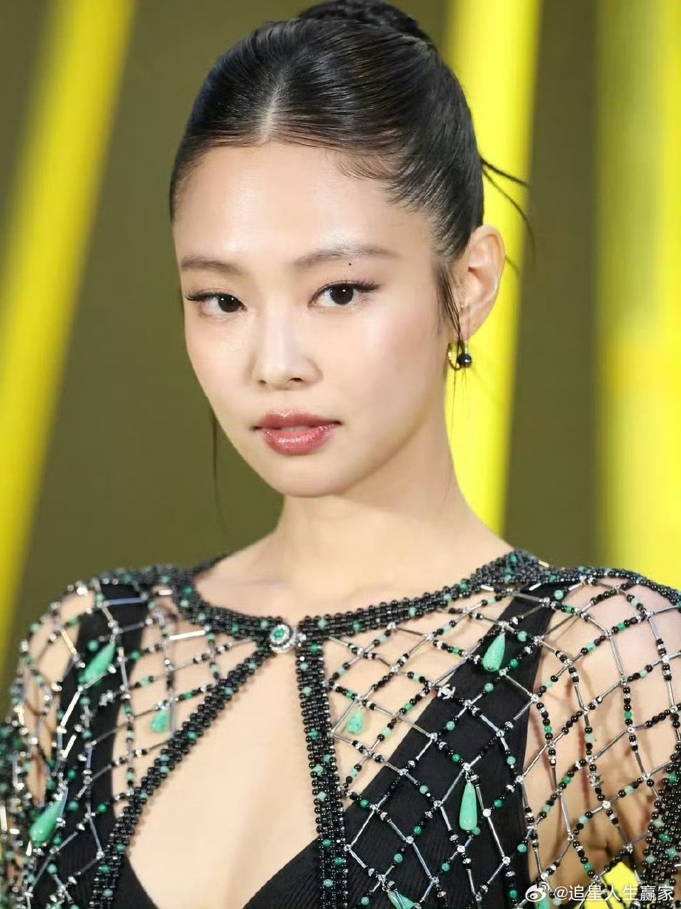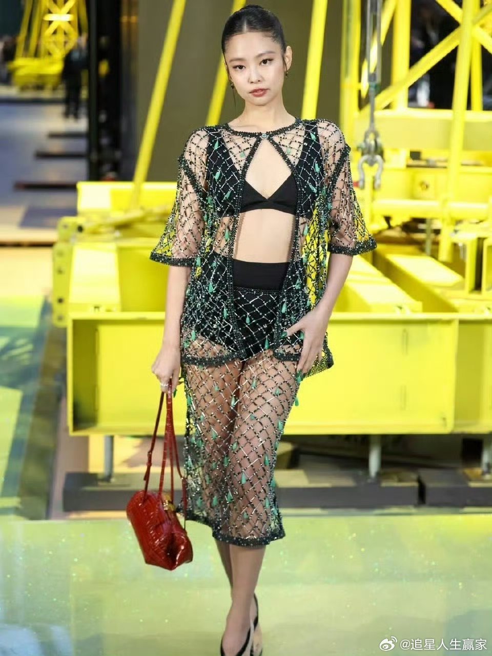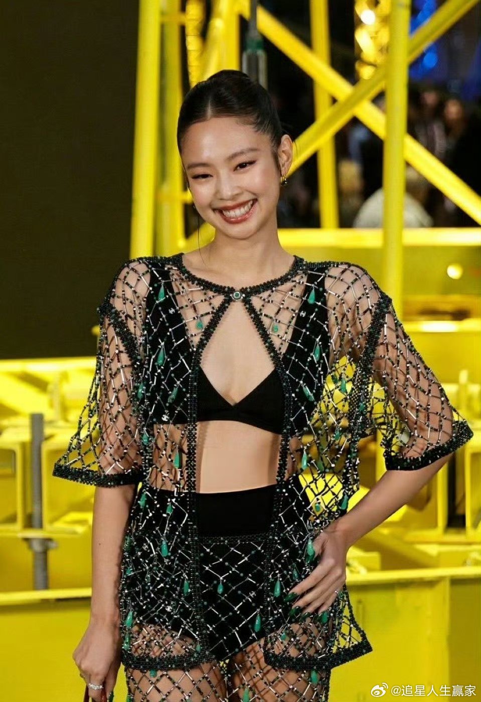 Jennie镂空透视装Jennie香奈儿看秀造型来啦~镂空透视装➕大光明盘发,这