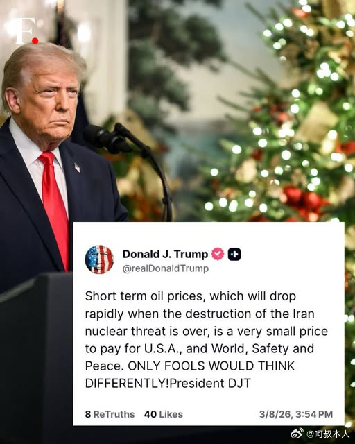 油价跳水原因昨晚国内刚大涨了一波,今天国际原油就暴跌了,现在已经跌到81美元了,一天跌了30%。川子出来放话肯定是要释放信号的,昨天说对朗子的战争结束了,市场恐慌情绪瞬间就没了,供应中断啥的预期也没了,而且G7 和 美国都释放战略储备了,释放大概 4 亿桶战略油,直接就把价格压下去了,而且川子说霍尔木兹海峡也可以走了,情况一反转,预期就没了,资金都往出跑,不久暴跌了……但是话说回来,昨晚国内的大涨了一波,就看到时间了能降多少 油价特朗普称战争已基本结束