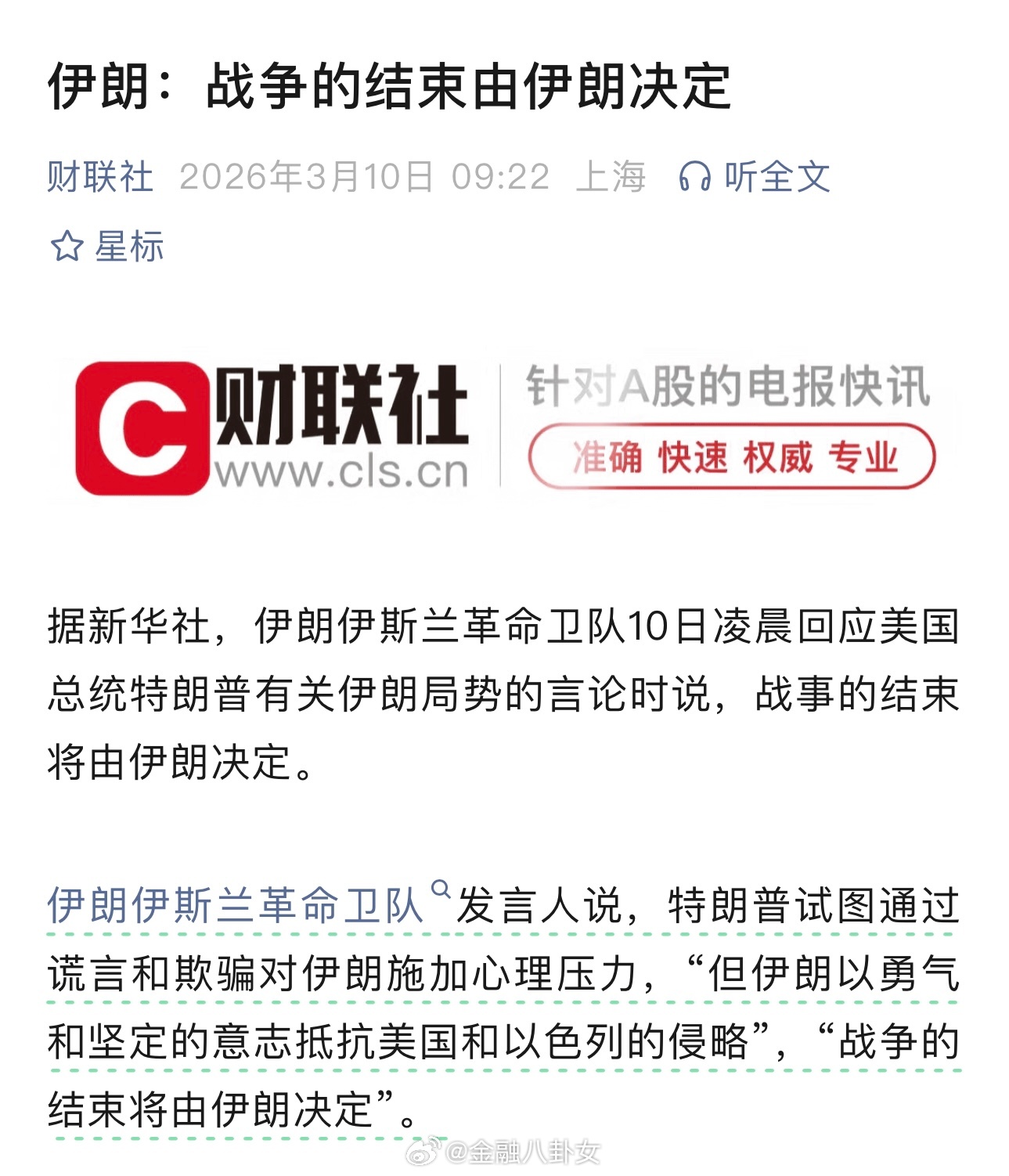 伊朗:战争的结束由伊朗决定