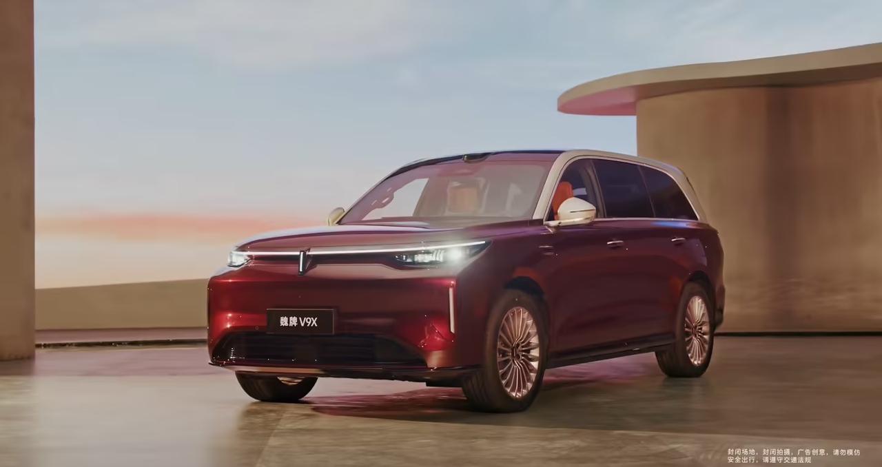 魏牌终于亮剑了!归元S平台首款车型——魏牌V9X今天正式亮相,这名字一听就是要干理想L9、问界M9的节奏[偷笑] 先看尺寸:5299mm车长、2025mm宽、1825mm高,轴距3150mm。2+2+2六座布局。这数据比理想L9(5218mm)还长一丢丢,空间应该够宽敞。 纯电续航最高363公里(工信部数据)!53.6度和77.7度两种电池可选,对应240km和363km纯电续航。77.7度电池+363km纯电,这已经比很多纯电小车还长了🔋 动力方面,2.0T混动专用发动机,最大功率175kW。配上大电池,日常通勤基本不用加油。 内饰延续家族化设计,大尺寸双联屏+全液晶仪表+双辐方向盘。怀挡设计+前排双杯架+无线充电,实用配置都给齐了。 二排零重力座椅+腿托+吸顶娱乐屏+小桌板,二排门把手区域也设置了手机无线充电!这设计太贴心了,坐在零重力座椅上刷手机,没电了直接放旁边充,不用起身找充电线[狗头] 这台V9X摆明了是要在35-40万级插混市场分一杯羹。理想L9、问界M9、魏牌V9X,六座旗舰你会选谁?
