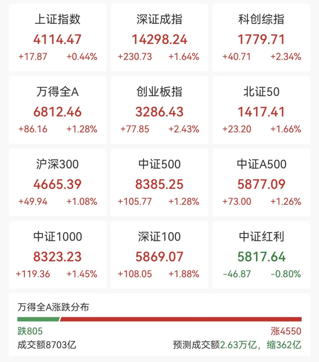 【#超4500股上涨#】3月10日早盘,A股三大指数集体高开,创业板指涨超2%。截至发稿,沪指涨0.44%,深成指涨1.64%,创业板指涨2.43%。此外,科创综指涨幅扩大至2%。