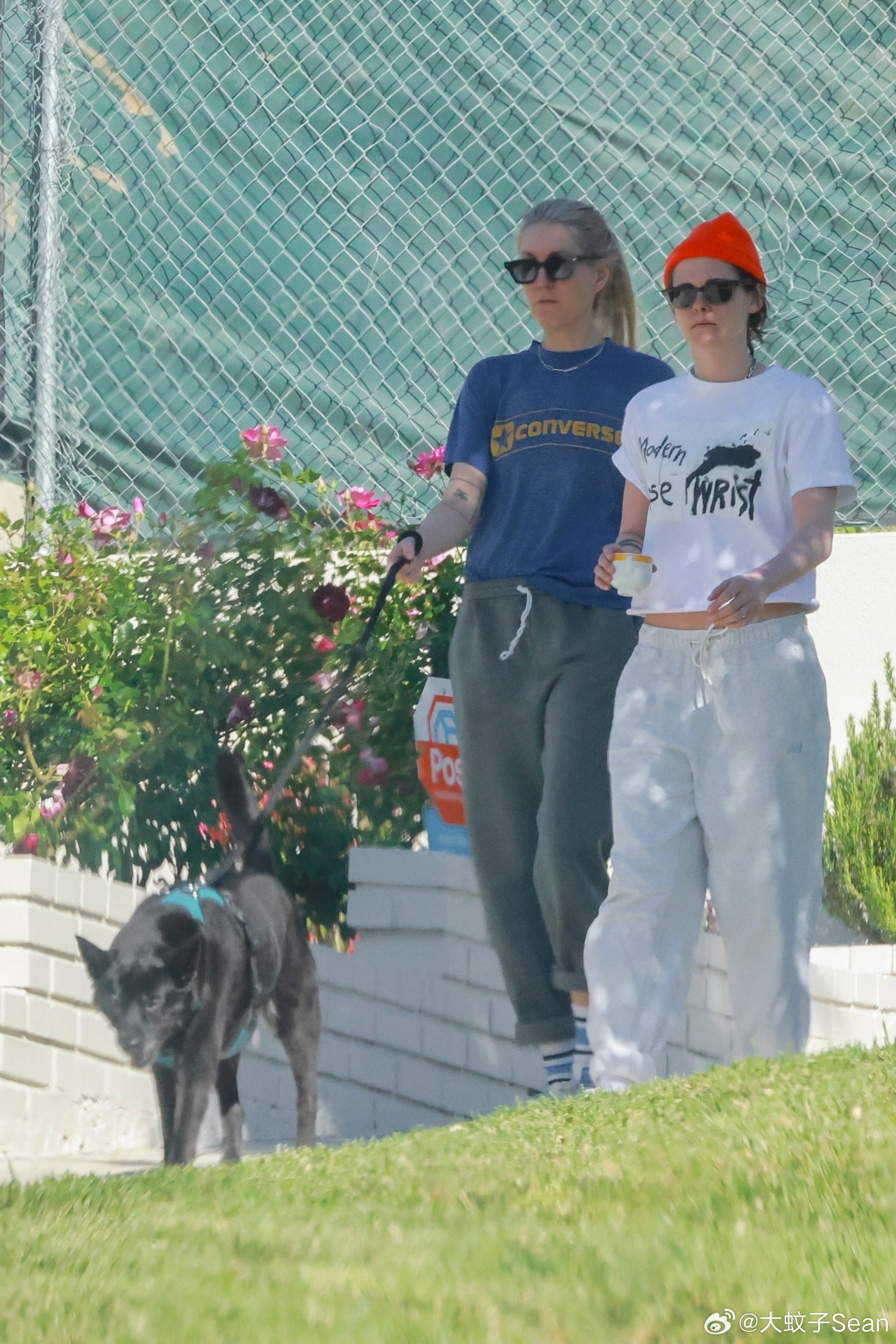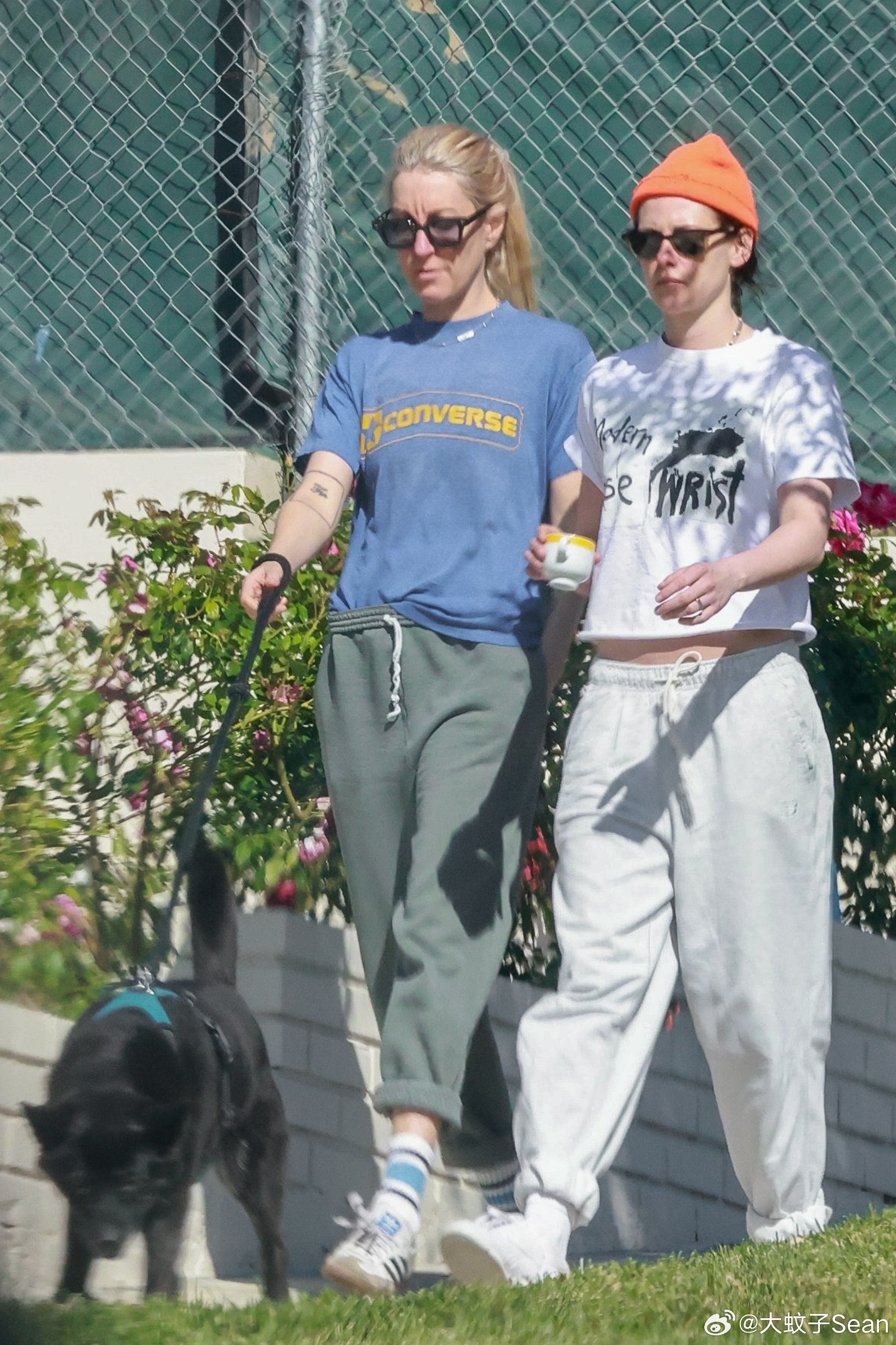 Kristen Stewart克里斯汀斯图尔特和老婆Dylan Meyer在洛杉矶外出,带着爱犬和小杯子出门溜达
