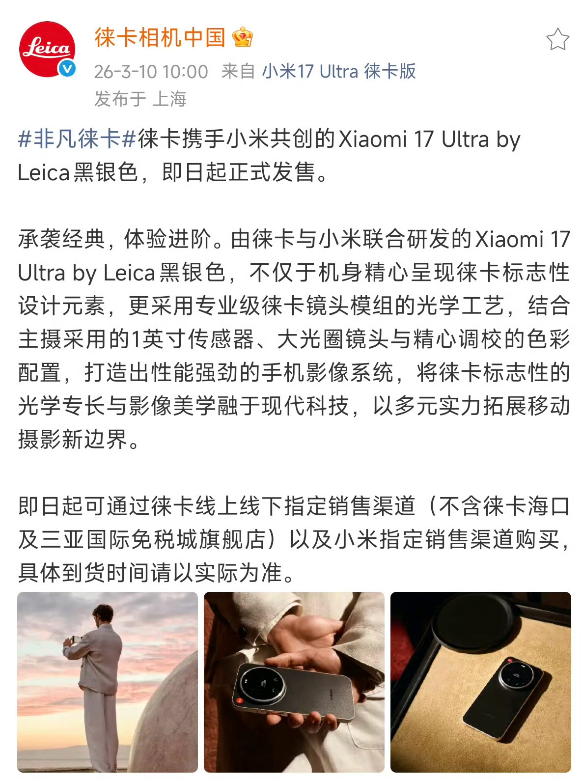 小米 17 Ultra 徕卡版「黑银色」今日正式开售:
