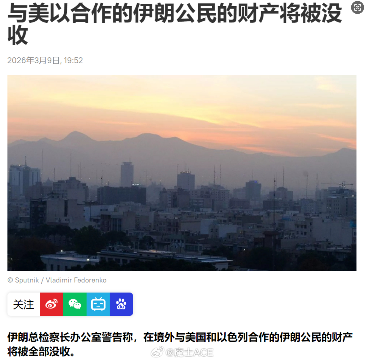 干的漂亮,清算很快就到!伊朗开始清算国内的反贼——所有与美以合作的伊朗反贼,财产将被没收!注意,这话是伊朗的总检察长办公室说的。检察体系说这话,意味着这事是走伊朗的法律体系来干,而不是伊朗军方或哪个头一拍决定的。更意味着,以后出现这类事,都按这个路子走,没收反贼的财产!上街的反贼基本都是精致利己类型的,下次再上街就要考虑自己那三瓜两枣了。这种针对反贼的措施,东方也应该学学了,对反贼就别手软。烽火问鼎计划伊朗称驱逐美以大使可过霍尔木兹特朗普称战争已基本结束