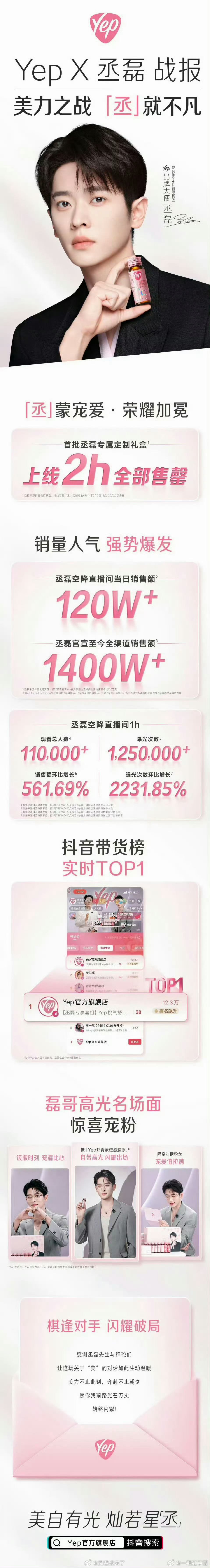 丞磊Yep直播官方战报专属定制礼盒上线2小时全部售罄🫘音带货榜实时TOP1秤砣们真给力丞磊真优秀!