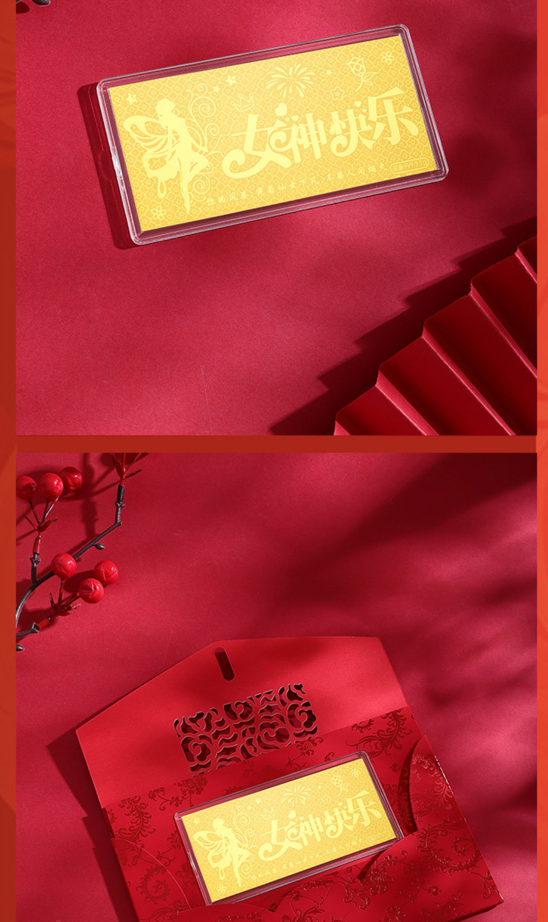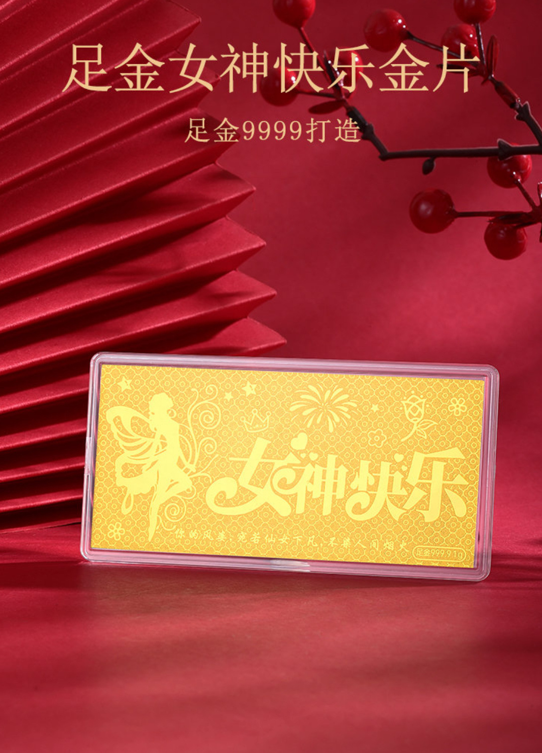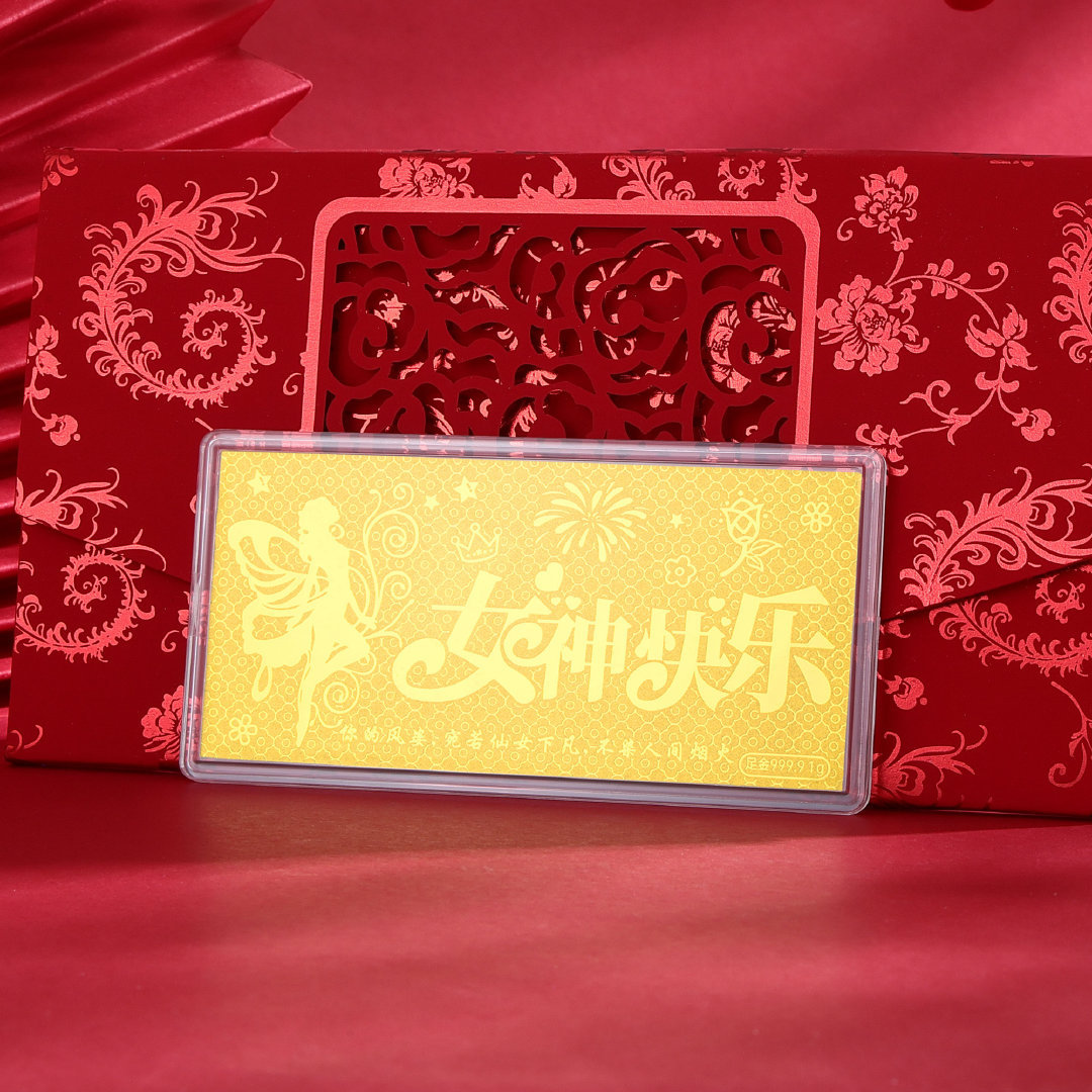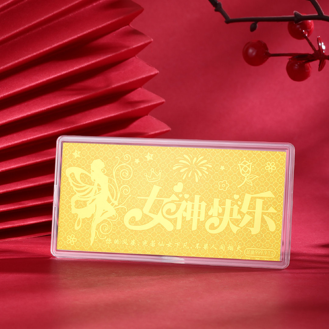 购买链接 🛒 :翠绿珠宝 足金9999女神快乐金片 精致女神节礼物惊喜