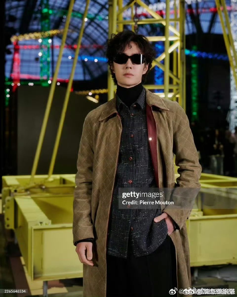 王一博出席巴黎时装香奈儿大秀一身墨镜大衣如何帅到你了吗王一博谷爱凌张钧甯合