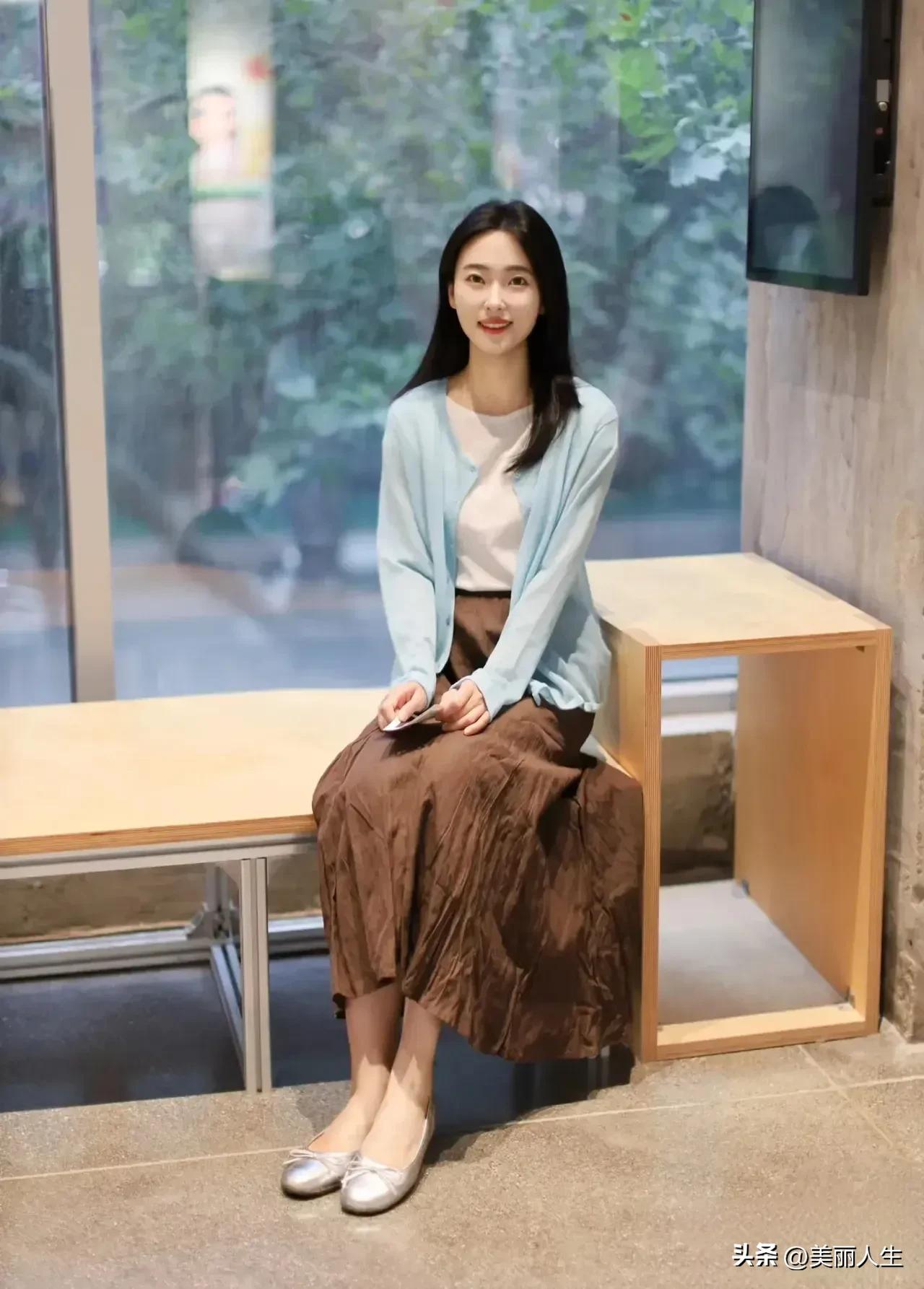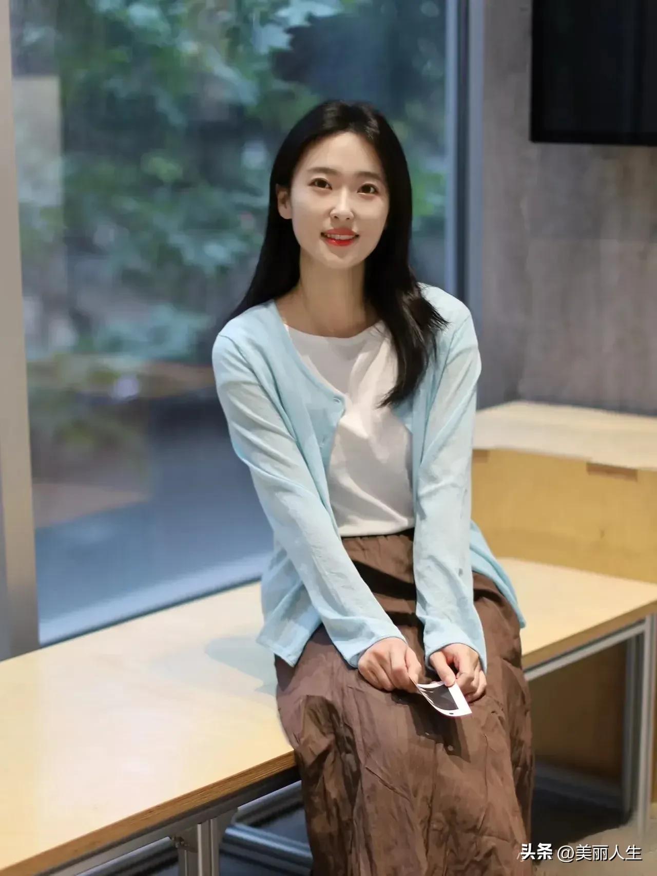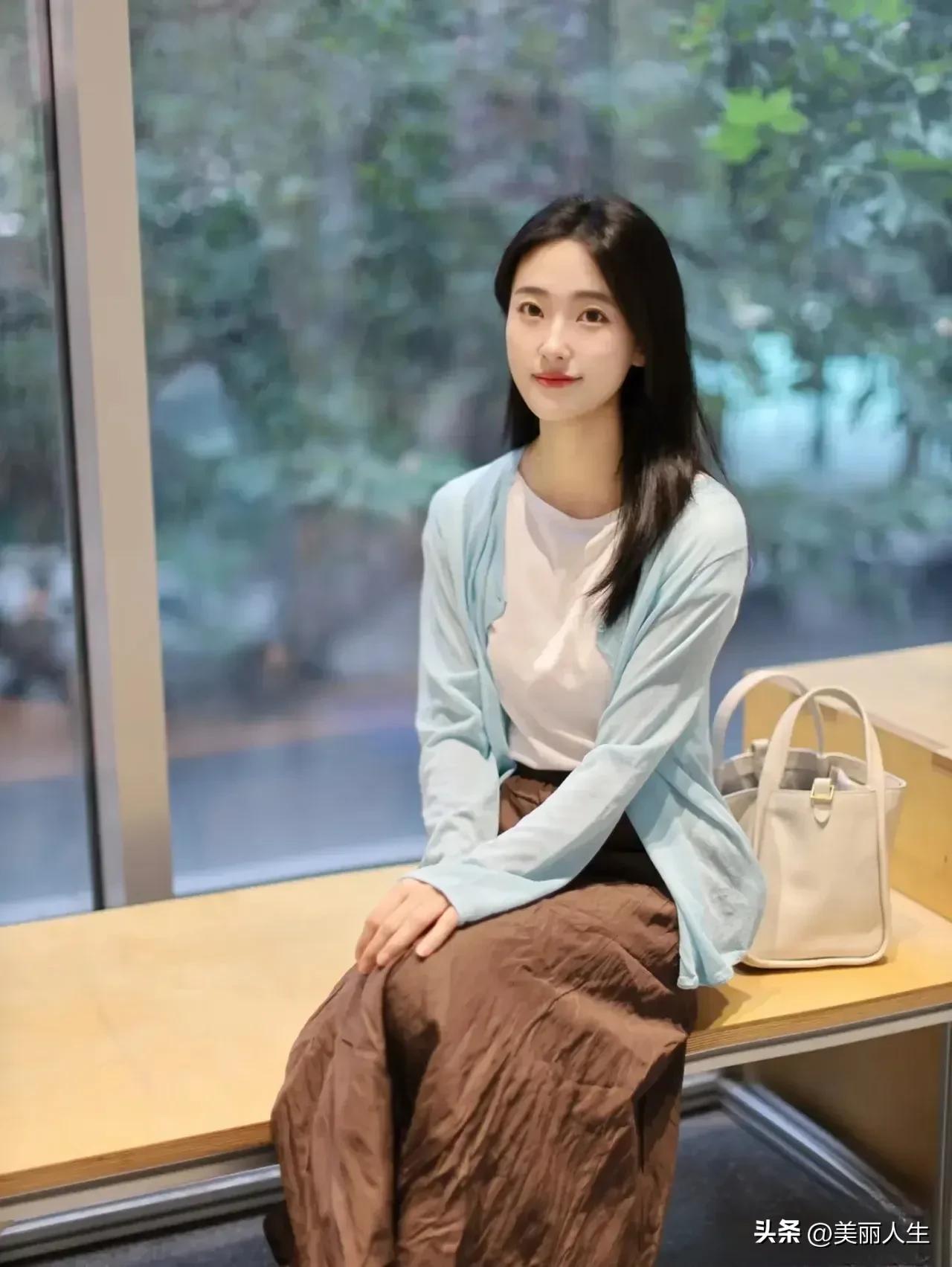 阳光下的温柔侧颜,红唇与长发相映成趣。