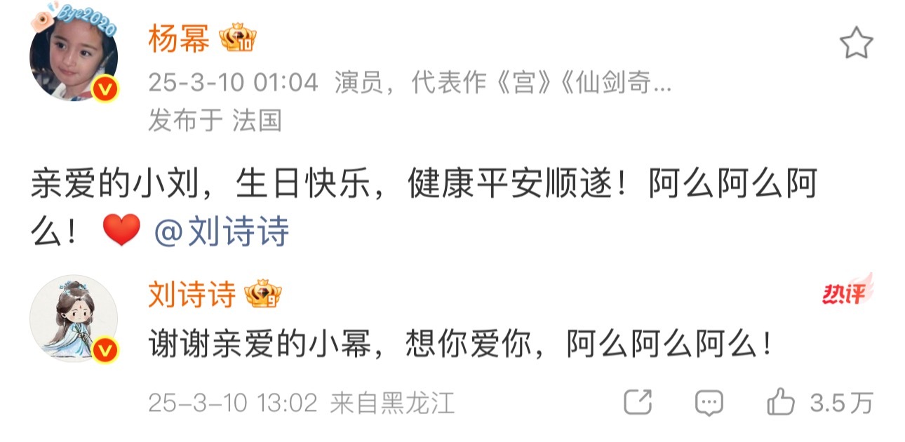 独属于诗幂的阿么阿么 杨幂连续五年为刘诗诗庆生