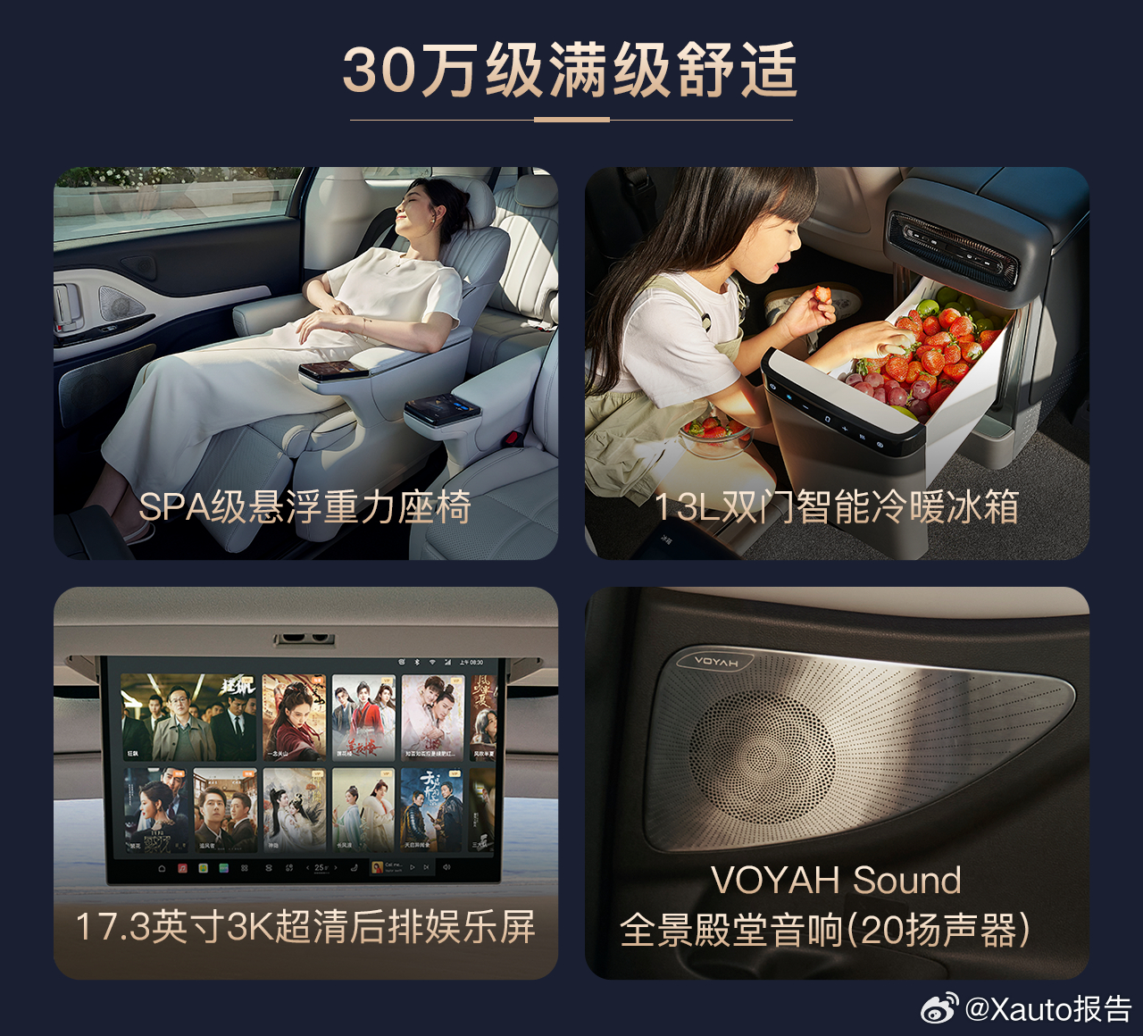 内饰方面,保留17.3英寸后排娱乐屏、29英寸HUD、座椅通风加热按摩、20扬声器、车载冰箱等配置。