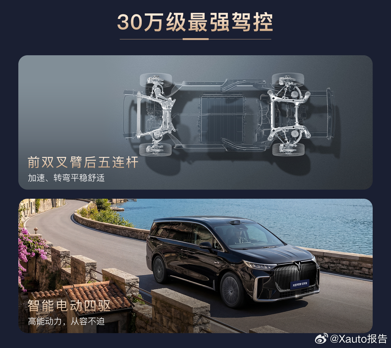 动力部分,岚图梦想家冠军版搭载1.5T发动机+双电机组成的插电混动系统,匹配41.7kWh电池,CLTC纯电续航235km。采用四驱动力,系统功率420kW,零百加速5.9秒。底盘采用前双叉臂、后五连杆及智能电动四驱。汽场全开岚图梦想家冠军版岚图梦想家岚图汽车