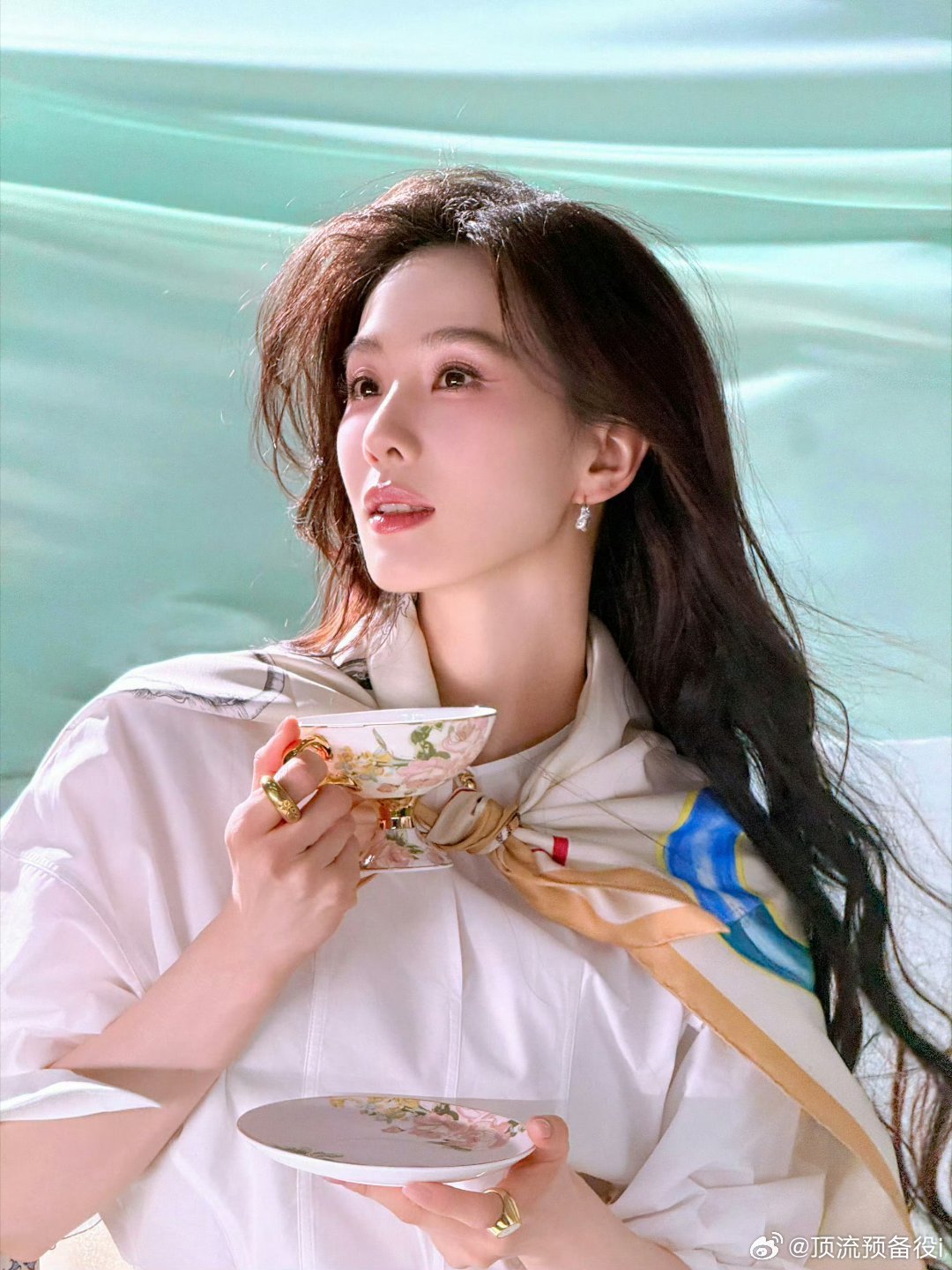 刘亦菲这条裤子挺养生,毕竟降温了肚脐眼必须护住啊
