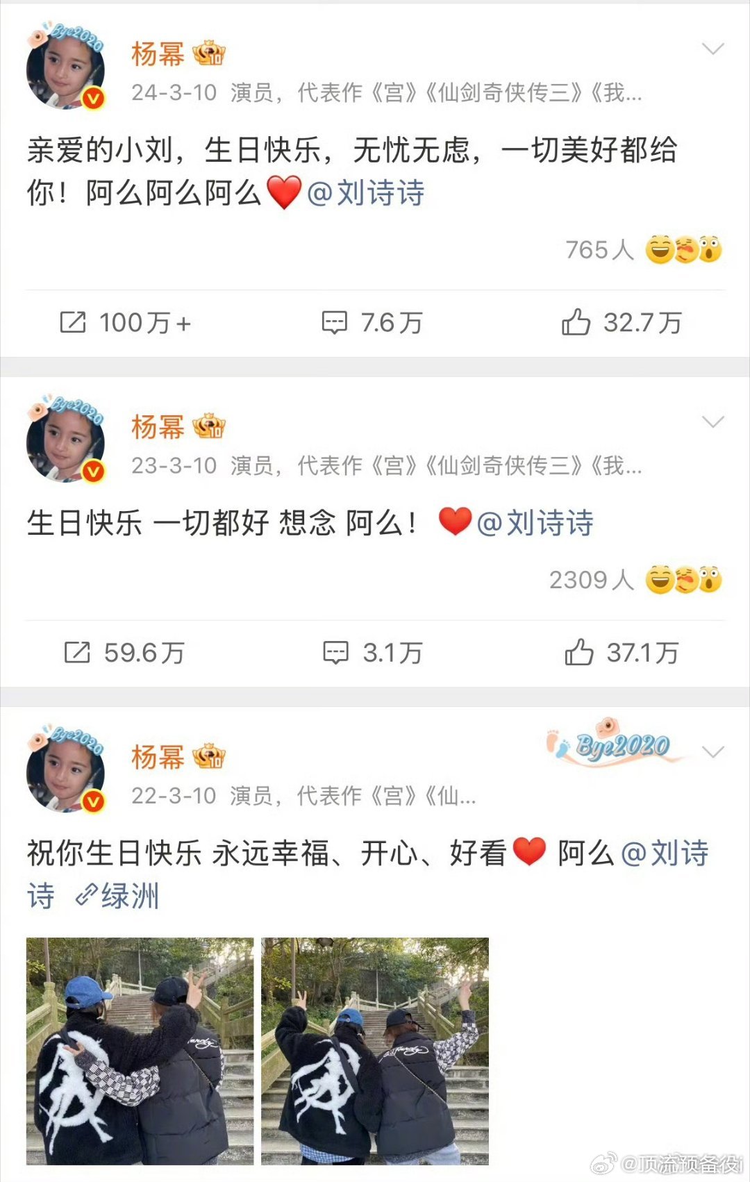 杨幂卡点1144给刘诗诗送祝福啦,从22年开始两人每年都在“阿么”杨幂连续五年为