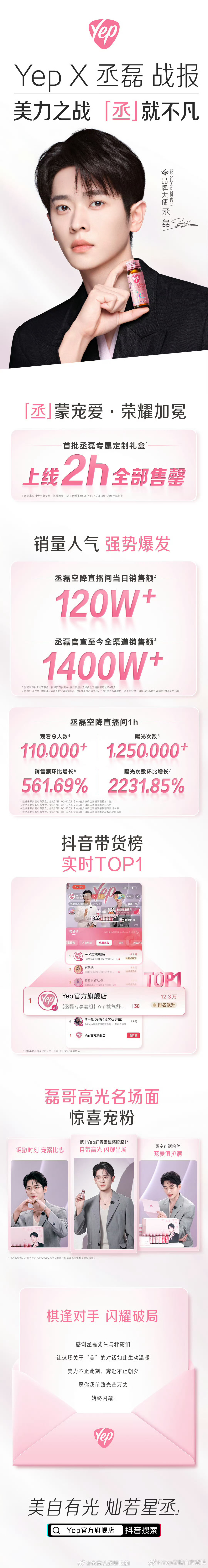 丞磊 Yep品牌直播官方战报🈶销售额破1400W磊子哥有效播剧商业价值👍小秤砣好给力