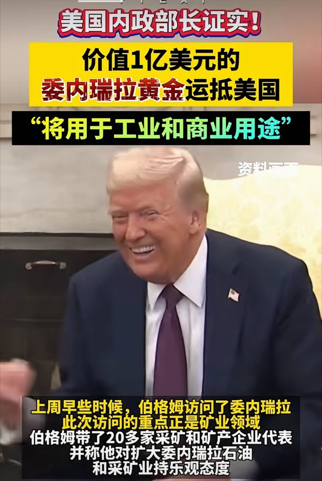 特朗普终于收到好消息了:价值一亿美元的委内瑞拉黄金已于3月6日运抵美国!