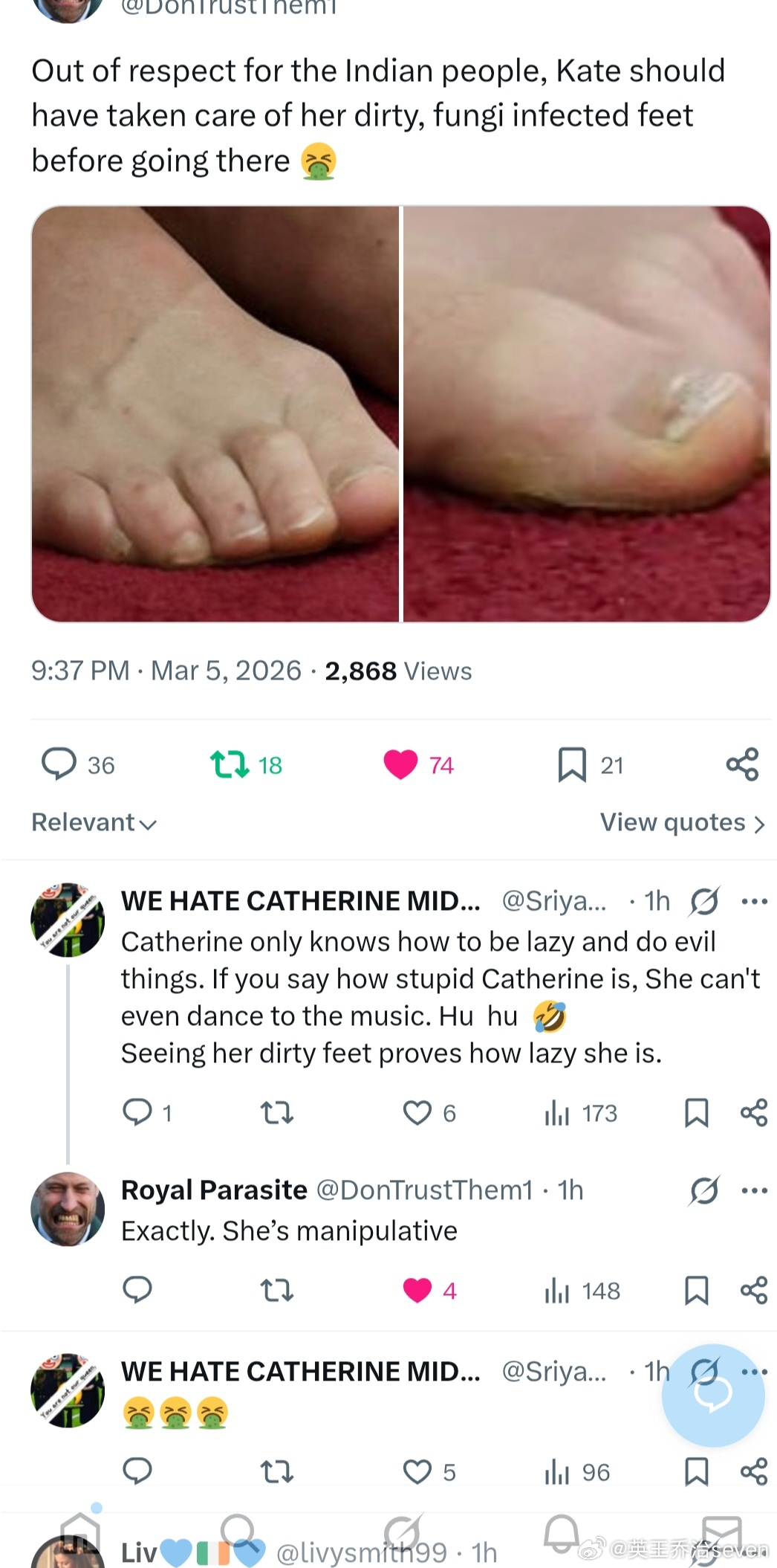 【揭皮waity】凯子除了被人发现有灰指甲和脚气,这次又被发现她的牙很脏!玛雅,搞搞卫生是犯法吗?她一个全年休息的人就在家待着?不爱干净吗?这两口子简直就是个外表光鲜的屎粪球~邪恶的外表配上邪恶的内心~天天不刷牙不洗脚不刮胡子幻想着亲爹退位给他俩?!