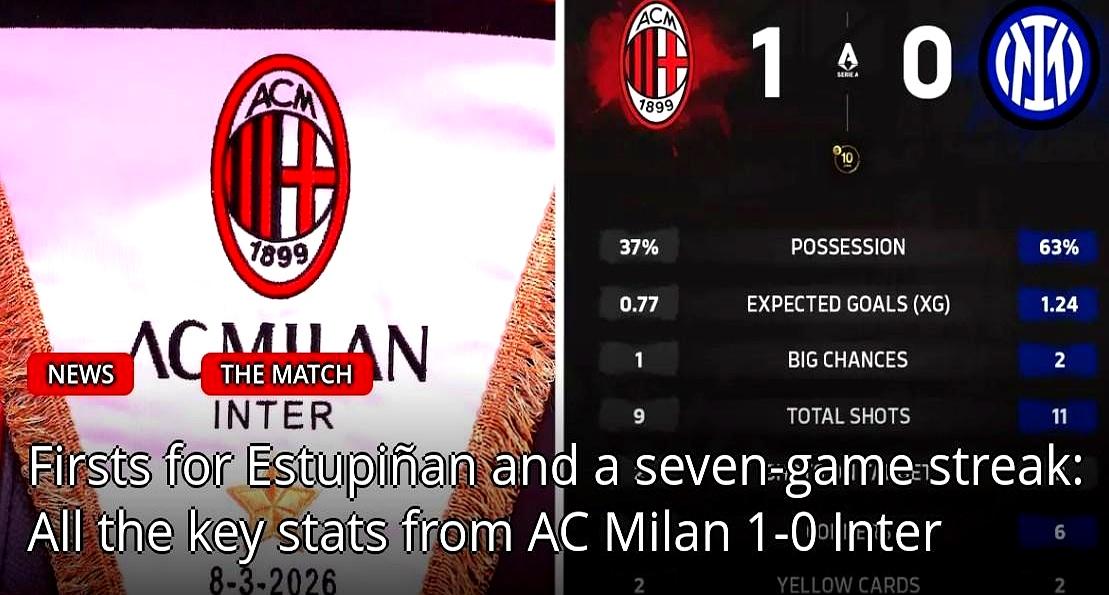 圣西罗75627名观众全看傻了,国米压了一整场,米兰反倒1比0把他们掀翻。 35分钟福法纳送精准直塞,埃斯图皮尼安插禁区左脚抽射上角破门。这是他为米兰进的第一球,也是首位在米兰德比进球的厄瓜多尔球员,赛后拿了全场MVP,防守端还交了3次解围3次抢断的答卷。 国米整场控球射门预期进球全占优,裁判直接吹了补时那粒进球无效。米兰时隔十四年再次完成联赛双杀国米,积分榜分差直接缩到7分,还剩10轮,意甲争冠悬念瞬间拉满。 足球从来不是拼场面热闹,不是拼数据亮眼,而是拼谁能把仅有的机会攥成进球。