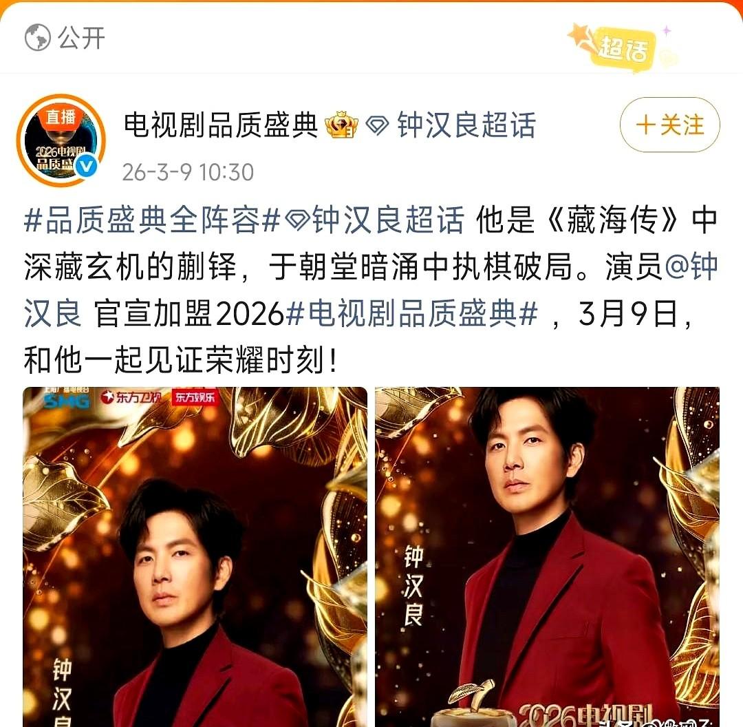谁能想到,钟汉良居然要靠一个出场不到两集的配角,去走电视剧品质盛典的红毯。 2025年的现象级大剧《藏海传》,肖战是绝对主角,钟汉良演他爹蒯铎,戏份主要集中在第一集。 就这么个角色,灭门戏的演技却被夸爆,直接奠定了全剧的悲情底子。结果,他真就凭这个角色去了盛典。 这说明什么?偶像派转型,光有演技还不够,得有持续的爆款男主剧续命。虽然他后面还有《亦舞之城》和《蜜语纪》,但能不能再爆,谁也说不准。 靠零散的演技高光,终究续不上巅峰期的热度。