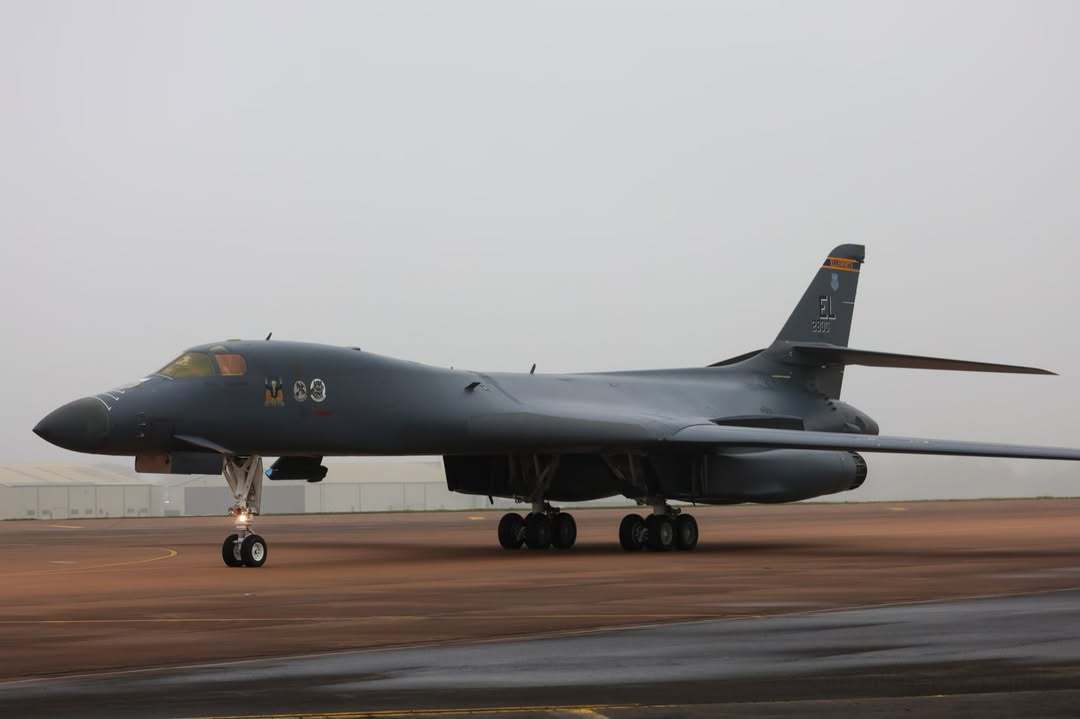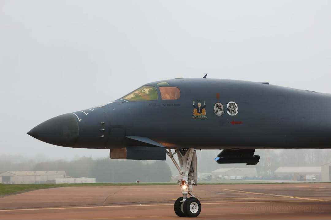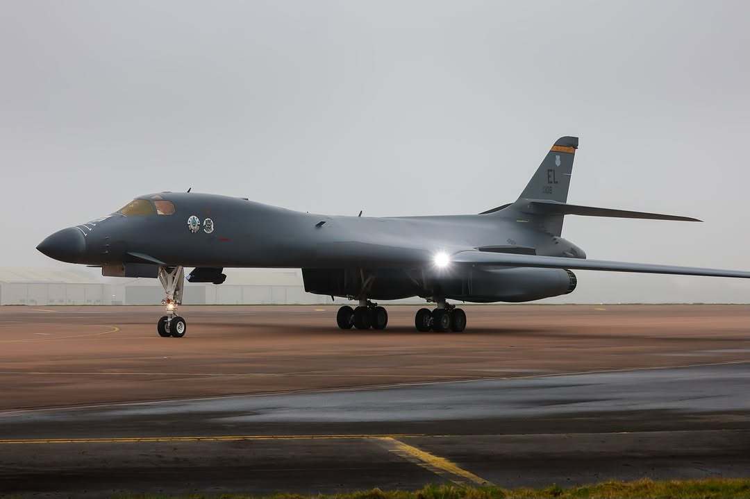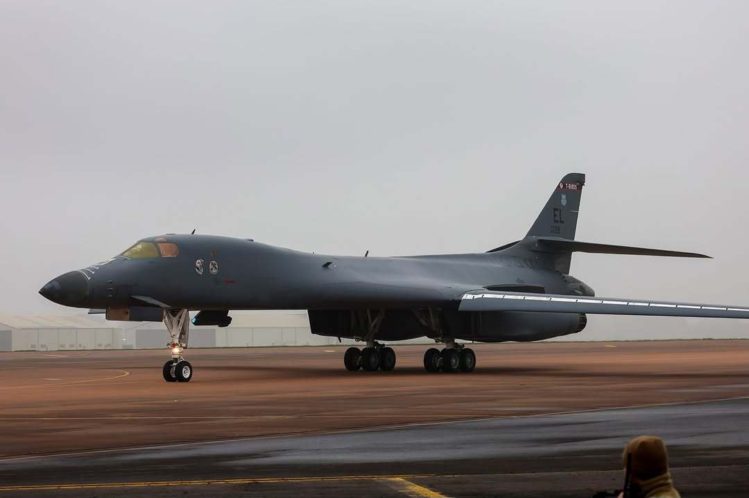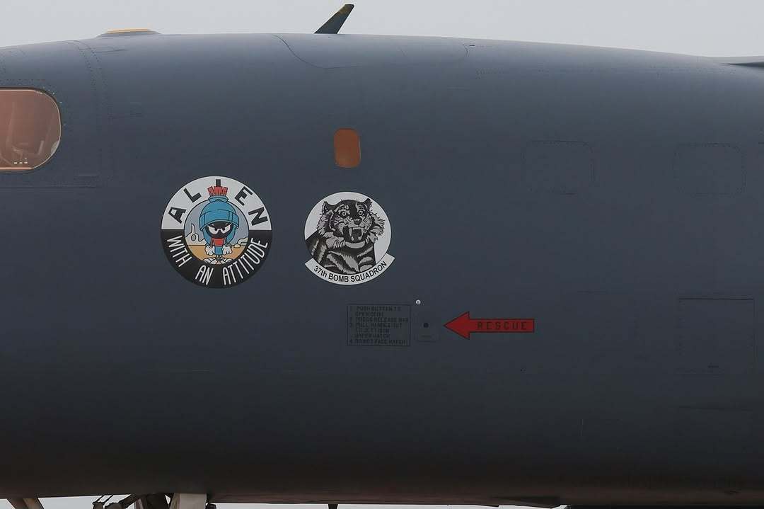 3月7日,部署到英国皇家空军的费尔福德空军基地(RAF Fairford)的三架MD二等人B-1B“枪骑兵”轰炸机的机头涂装美伊以冲突