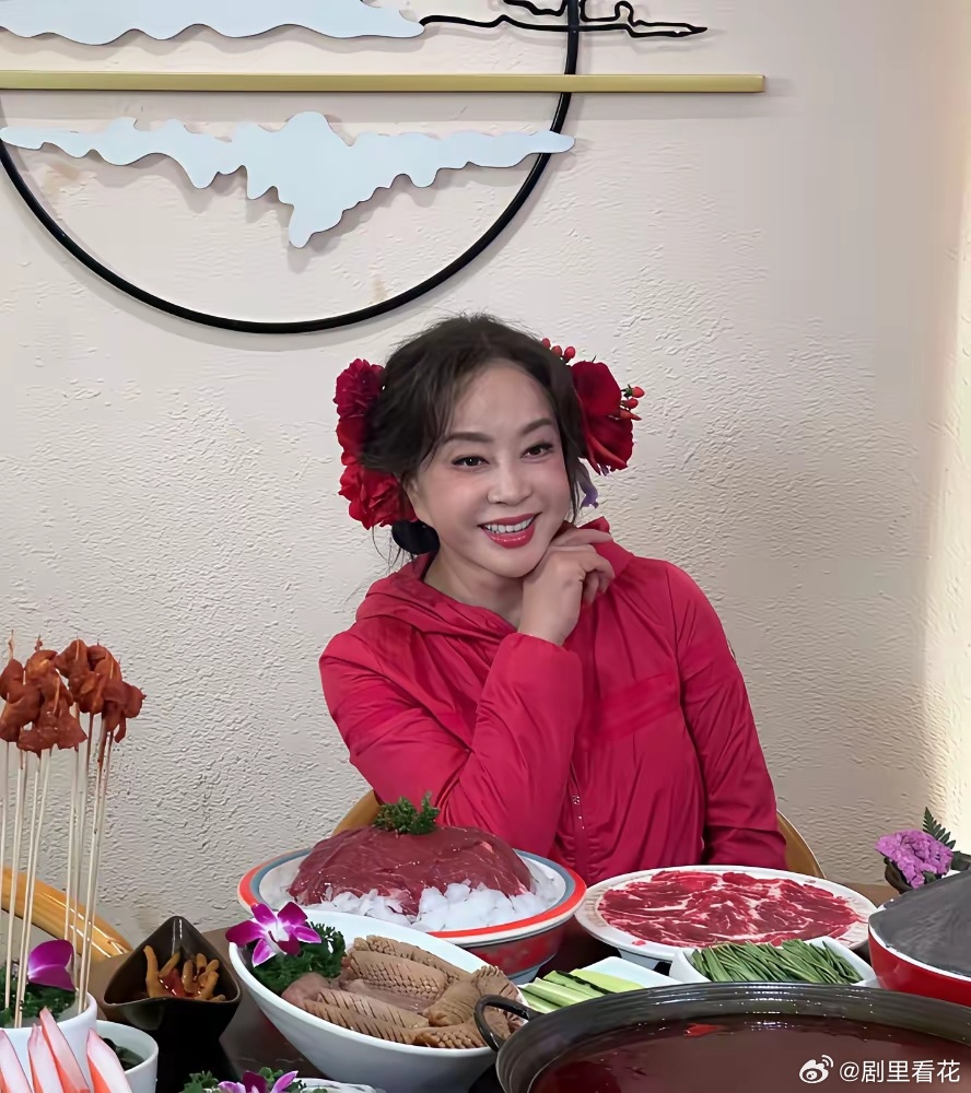 我天,刘晓庆扮少女都成瘾成魔了。大白天的在重庆大街小巷的头上戴满鲜花。吃个火锅都戴着鲜艳夺目的花朵,哎呦,我都替她尴尬!还真当自己是少女!简直走火入魔了。刘晓庆一回重庆画风大变,穿着红色的衣服,头上戴满红色的鲜花,摆出一副少女娇俏的样子。感觉就像新娘子出嫁的样子,喜庆的不要不要的!感觉刘晓庆入戏大深,还没有走出《锦绣安然》的戏里。