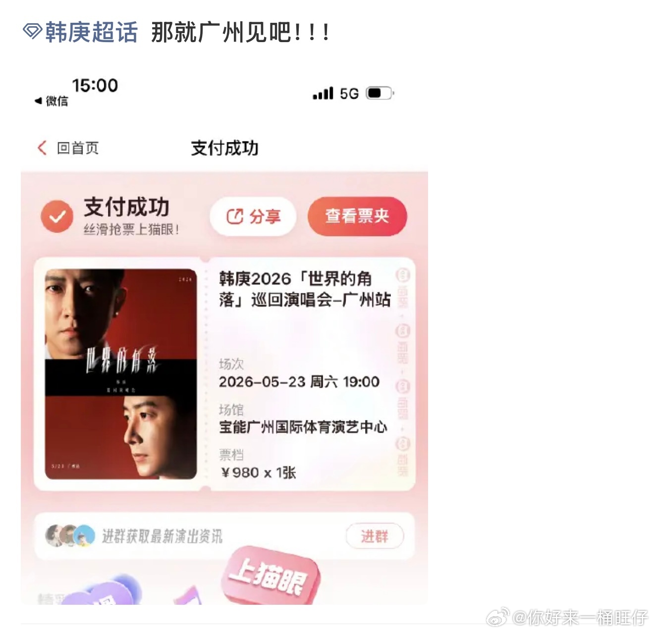 韩庚演唱会广州站售罄 「世界的角落」巡演首场广州站售罄认证!实力依旧能打,坐等演唱会上解锁全新舞台惊喜!韩庚世界的角落巡演