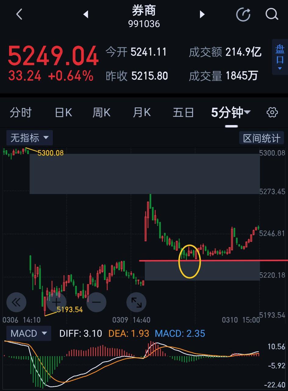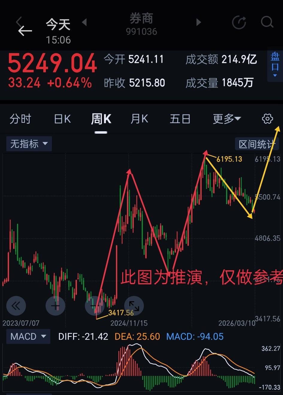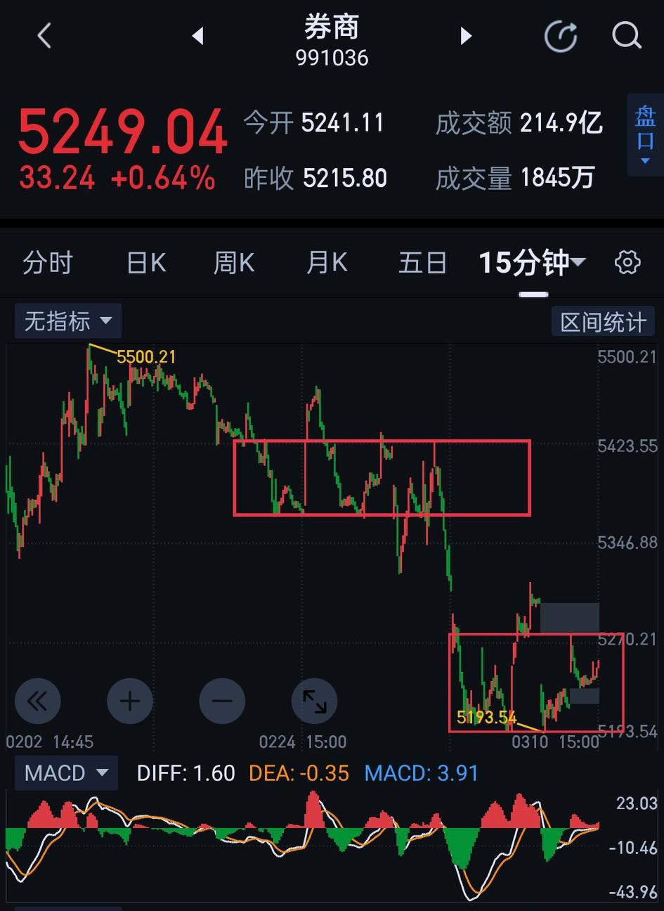 券商板块,正式进入寻找拐点阶段。 近期,随着做空动能的进一步释放,券商有望以图(1)三十分钟级别的盘整背驰形态,结束近八个月的调整。 细节上,明天5228能否有效站稳是关键。若站稳 ,需观察从5193开始的三十分钟一笔上是否能冲过5312的压力,如站上5312 ,则5193暂可当做图(1)的一买点,后期还需三十分钟一笔下不创新低来确认5193的有效性。若不创新低可当做二次买入机会。如明天不能站稳5228 ,则要防止形成图(4)的第二个下降中枢,若中枢形成,新的买入机会只能是等形成趋势背驰后,再择机入场。(图中黄色线段属于待确认走势)