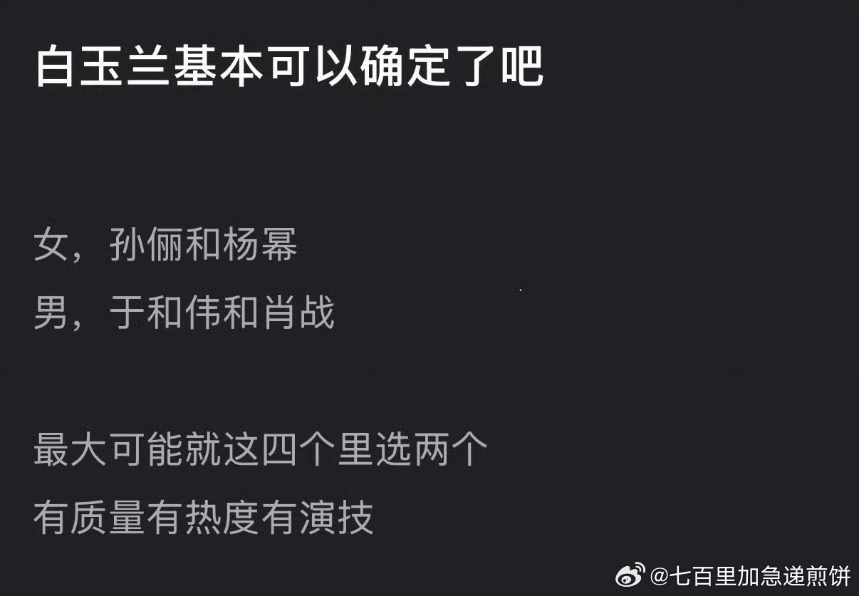 2026白玉兰预测白玉兰视帝视后提名名单,应该差不多就是这样了!视后:1.孙俪《
