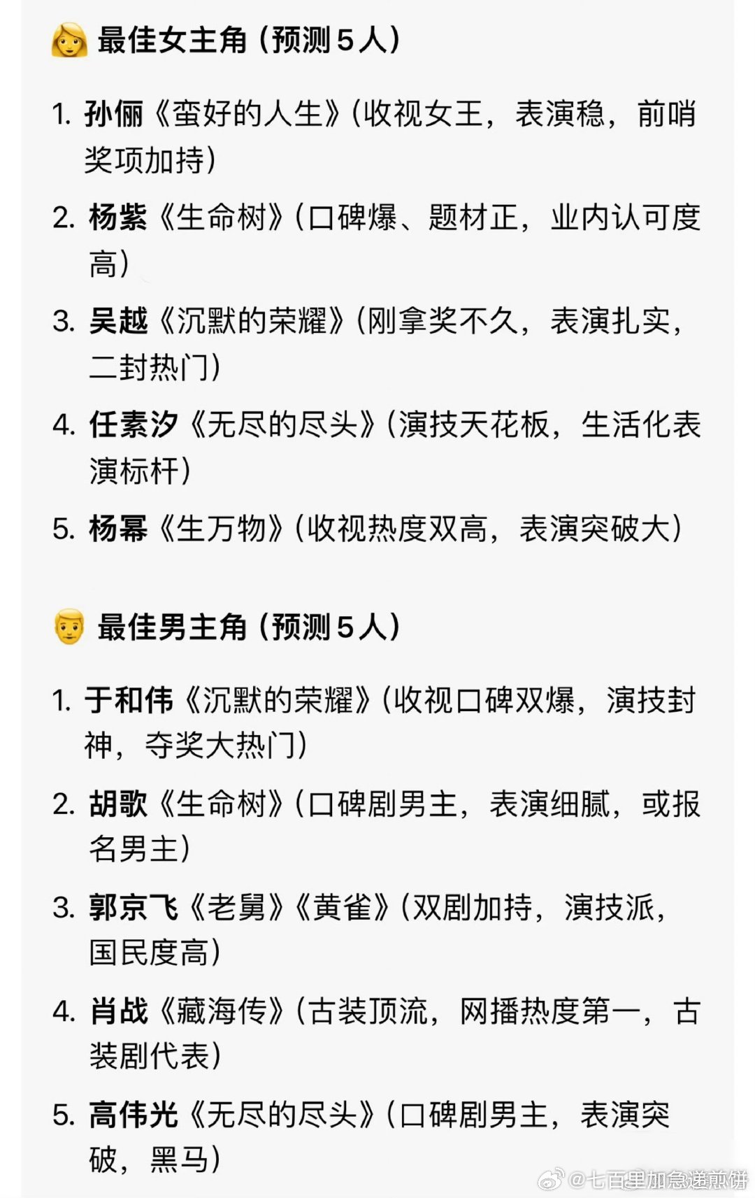 瓣组对2026白玉兰预测奖项