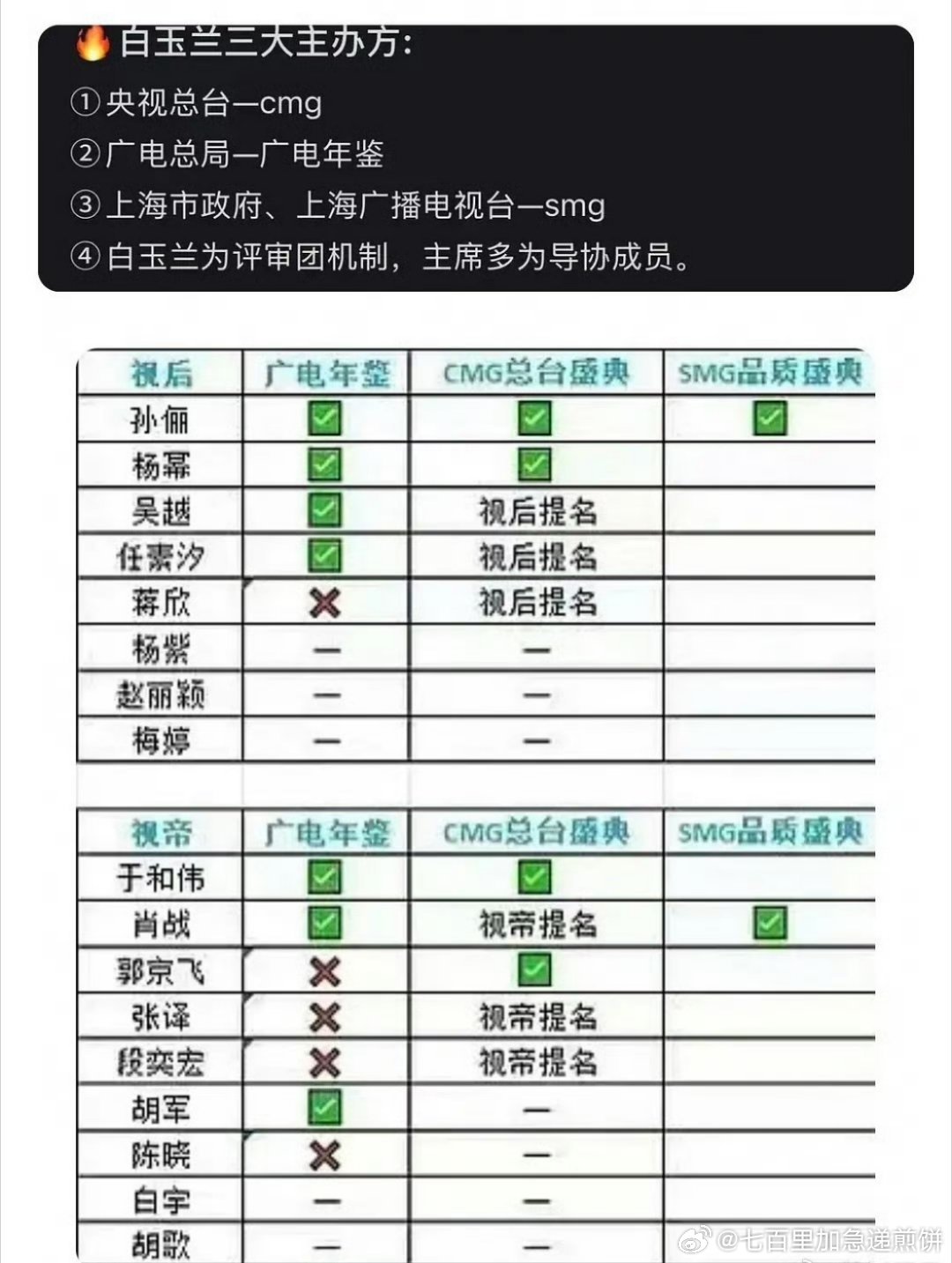 smg和cmg作为白玉兰前哨,提名命中率还是很高的。白玉兰视后1号种子孙俪2号种