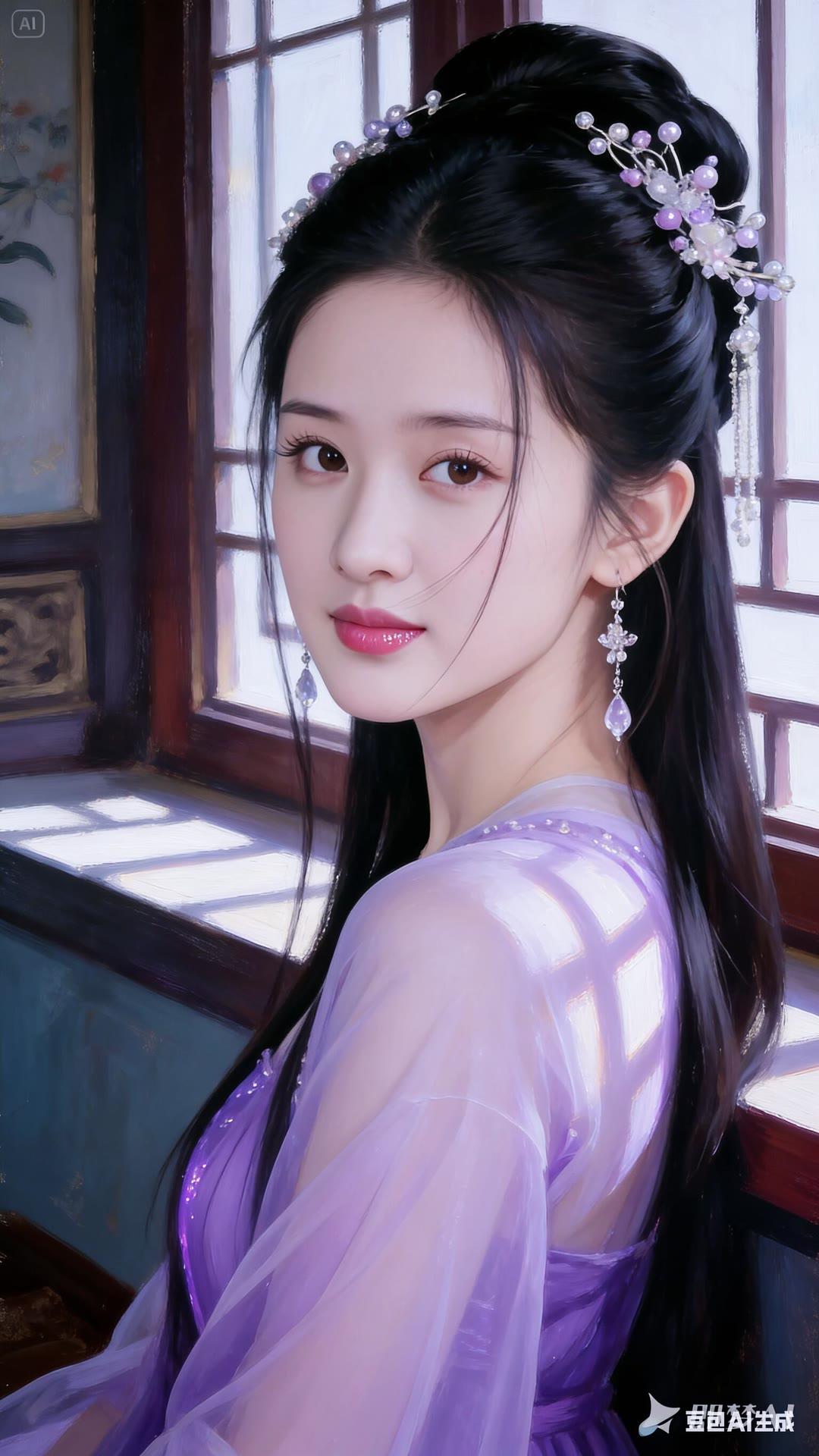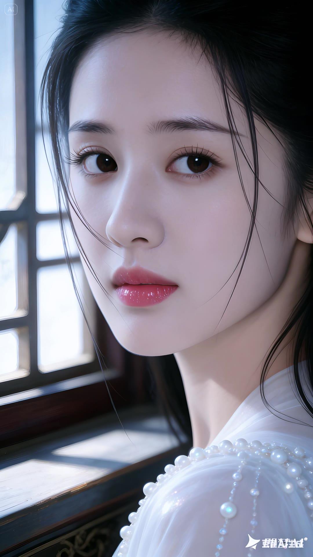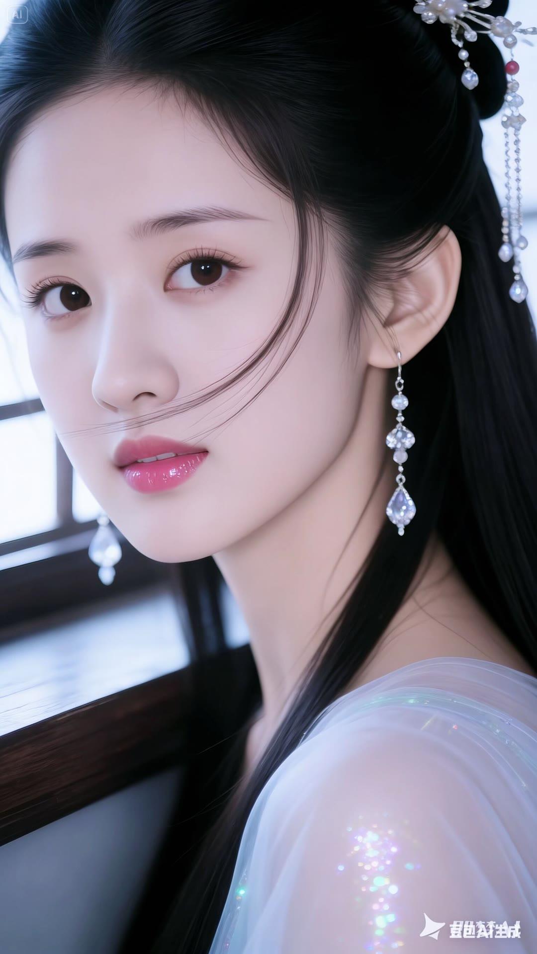 温柔甜美的微笑,优雅的白纱连衣裙,散发着迷人的魅力。
