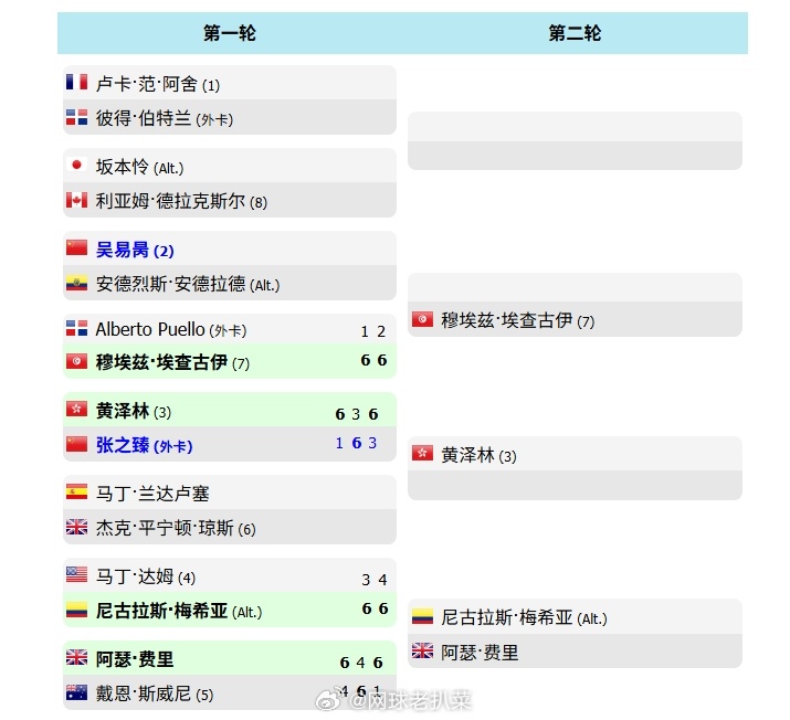 三位中国球员吴易昺 张之臻 黄泽林出战多米尼加·卡纳角CH175资格赛。首轮又来了个内部相杀:黄泽林轰出19记ACE以6-1 3-6 6-3战胜张之臻,晋级决胜轮资格赛2号种子吴易昺与安德拉德首盘战至5-5时,比赛因天气原因推迟至明日进行。网球中国网球向前冲ATP