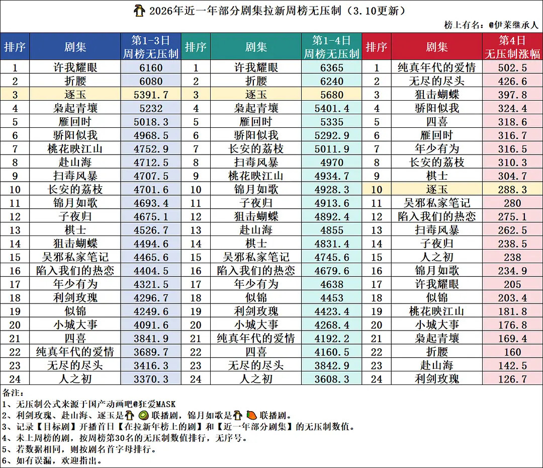 29500的剧四天登顶周榜,大热剧需要考虑的都是什么时候进年榜了…