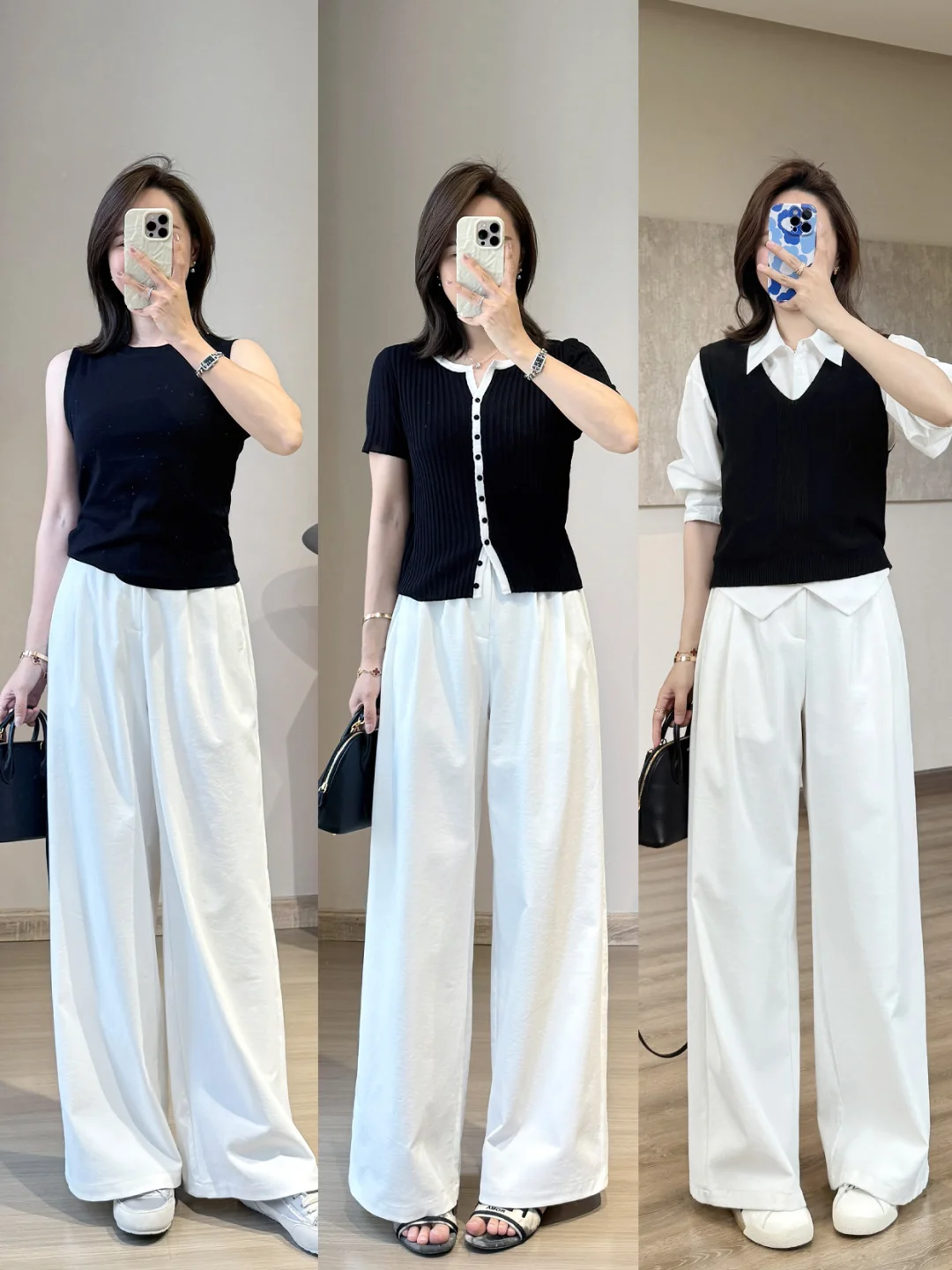白色阔腿裤显瘦穿搭,解锁春日氛围感~