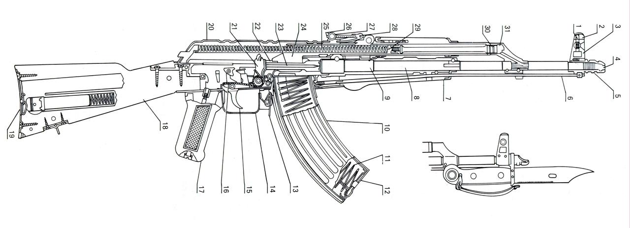 采用 AKM 枪口防跳器的 五六式冲锋枪——毛子在 AKM 上安装了一个斜切口形的枪口防跳器(参见图2~3),不是所有的 AKM 都安装,只是在第3型 AKM 上才开始有的。不过,第3型 AKM 被苏军以及 华约等国家广泛装备,所以有时候会以为是所有的 AKM 都安装了。 目前还不知道为什么要在 五六式冲锋也安装枪口防跳器,估计是为了试验,或者为了出口。